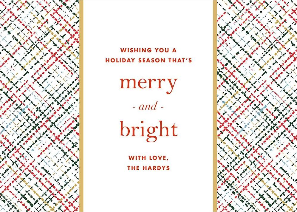 Send your cards in style with this holiday tweed inspired greeting, designed by kate spade new york for Paperless Post. Printed on Mohawk ultra white 120 lb. card stock that is soft to the touch and matches our superfine white envelopes. Paper is FSC certified and made using wind power. Corresponding Paperless Post digital design […]