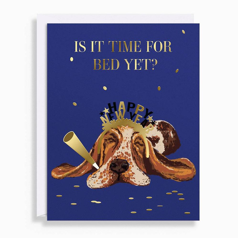 This silly New Year card set features a sleepy dog, reflective of how everyone feels after a long year!