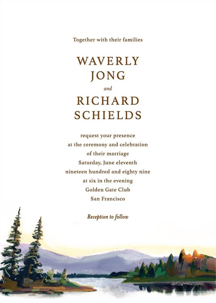 Surround yourself with those that you love most on your big day. Share all your wedding day details on this scenic wedding invitation by Paperless Post. Printed on superfine white paper, which has a smooth finish and is soft to the touch. 130# cover weight paper with 30% post consumer recycled content.