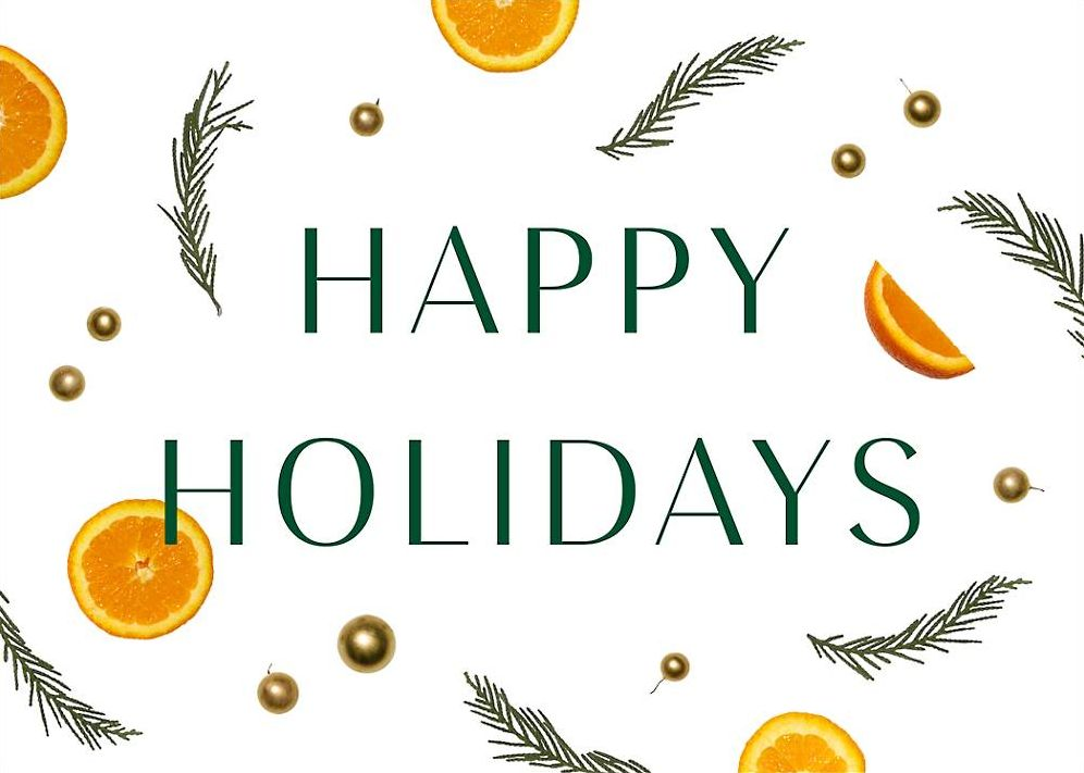 Spread the fruits of your holiday cheer with this colorful orange holiday card.