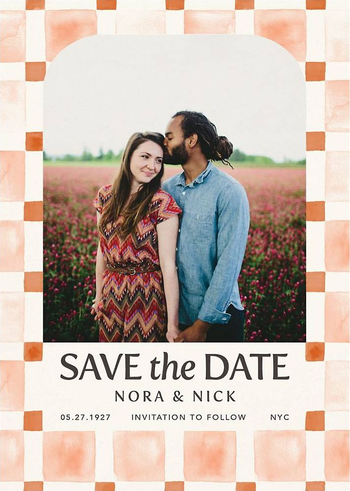 Organic Check Orange Save the Date Card