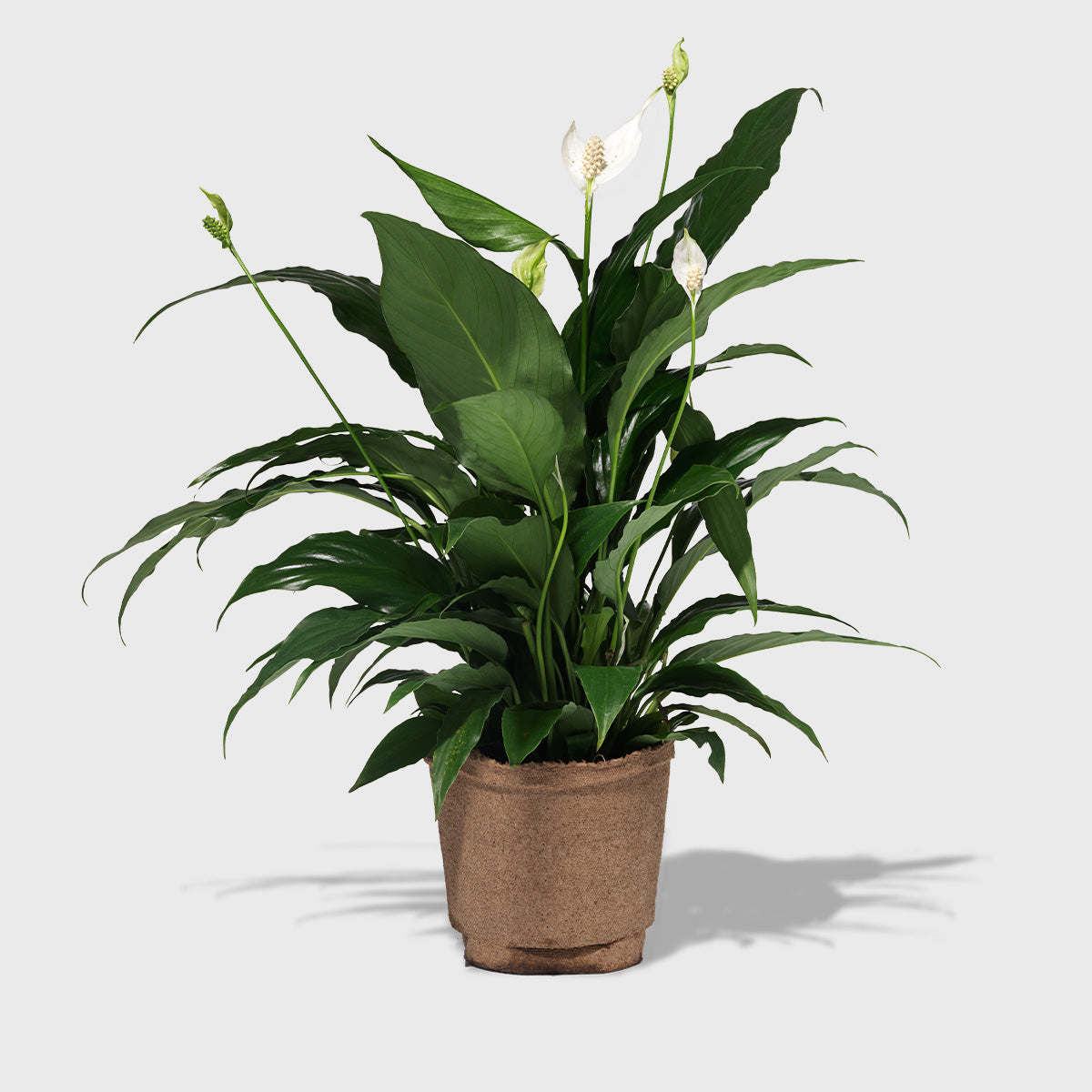 The Peace Lily is a lush and easy to care for plant that can grow between one and four feet tall and even develop beautiful white calla lilies if well taken care of. Native to the tropical rainforests of Columbia and Venezuela, the Peace Lily loves medium to bright indirect light and consistent watering. Your plant comes in a biodegradable pot! While you can always repot your plant entirely, you can simply place the entire plant, with the pulp pot, into a decorative pot of your choosing.