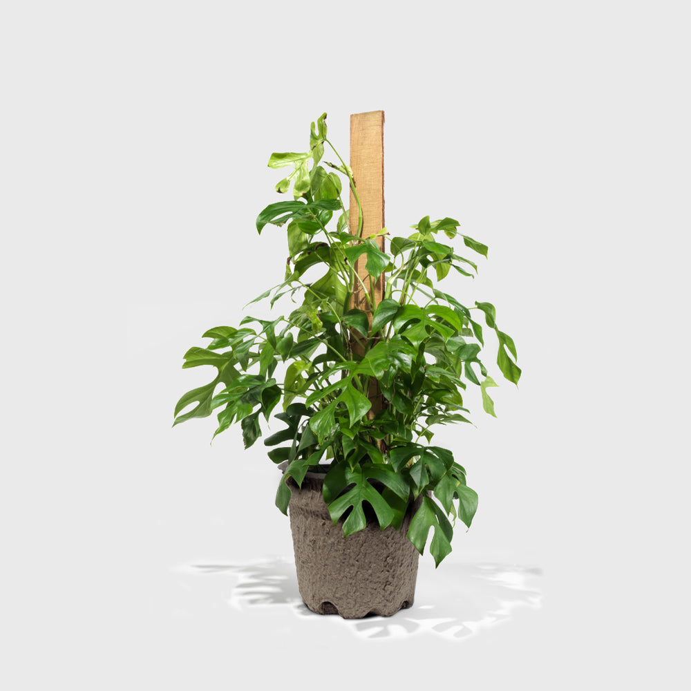 The Philodendron Piccolo is a beautiful pop of green for your space, with striking Monstera-like foliage. Native to Thailand and Malaysia, the Philodendron Piccolo loves bright indirect light and watering once soil is nearly completely dry. Your plant comes in a biodegradable pot! While you can always repot your plant entirely, you can simply place the entire plant, with the pulp pot, into a decorative pot of your choosing.
