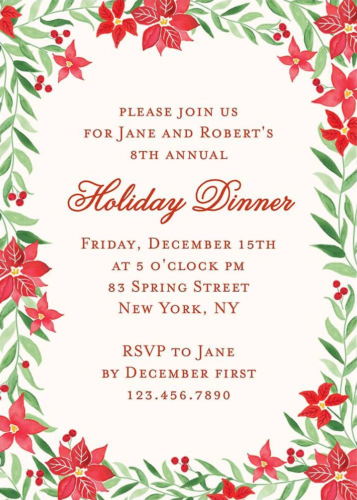 Poinsettias compose a perfect frame for this pretty, personalizable invitation.