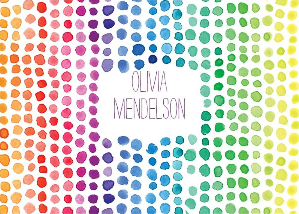 Your correspondence is sure to stand out with this multi-colored stationery. Design features your name surrounded by a playful dotted rainbow pattern.
