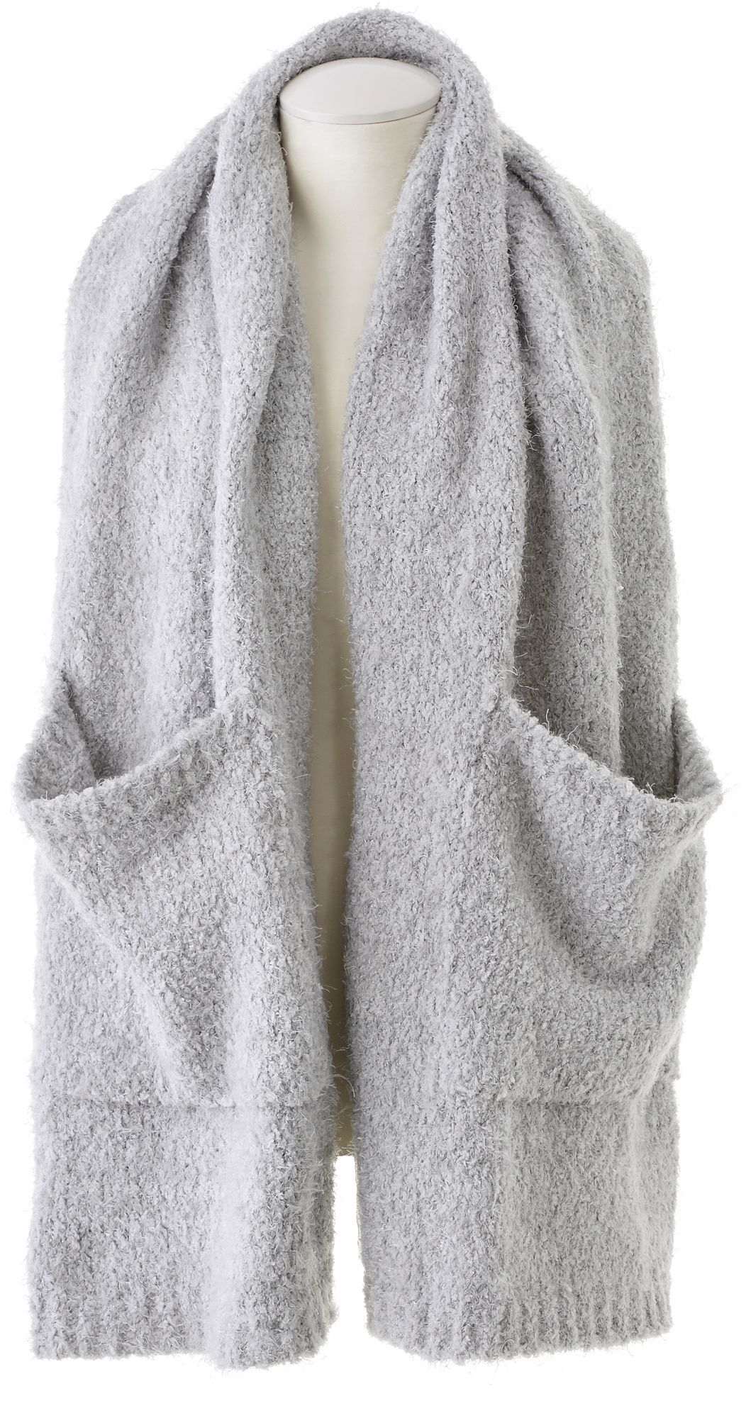 The perfect wrap in an irresistibly soft yarn with a large pocket at each end to make you and your hands wonderfully cozy, comfortable and warm. Just snuggle up on the couch wrapped up in the most huggable shawl ever!