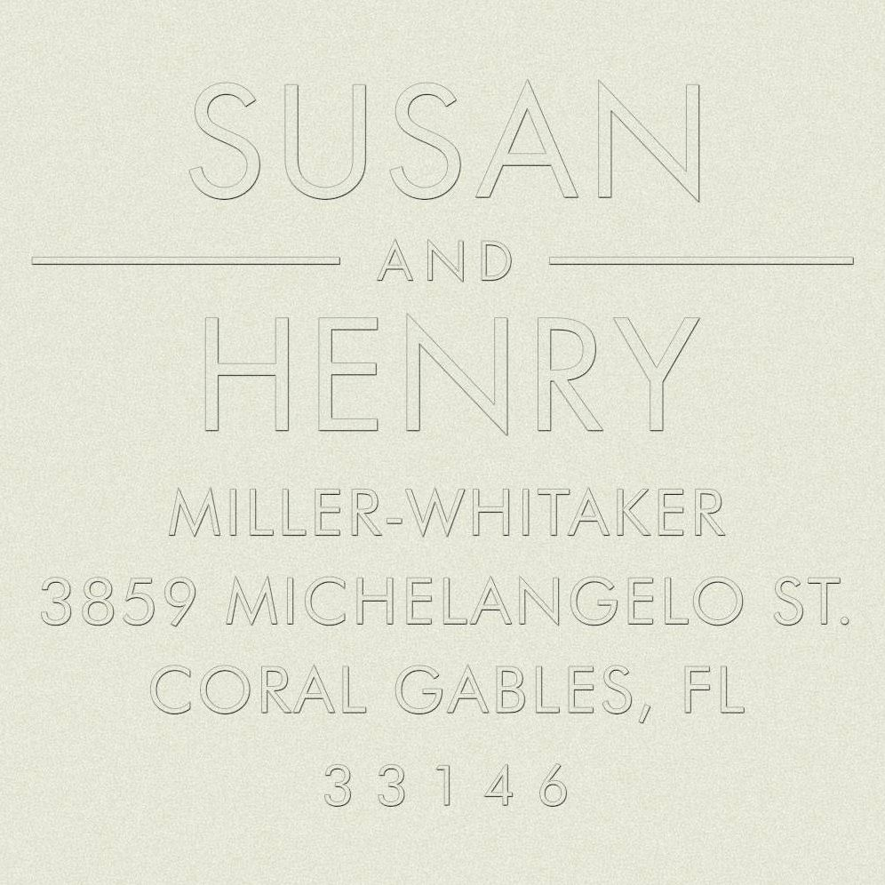 Your plate will be produced with the capitalization and punctuation shown in the sample. For this embosser “and” will be included in your design.