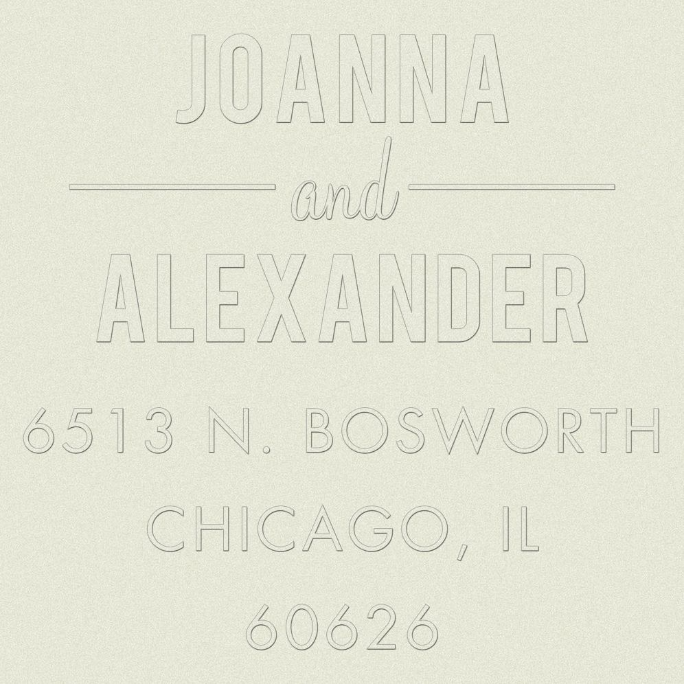 Your plate will be produced with the capitalization and punctuation shown in the sample. For this embosser “and” will be included in your final design.