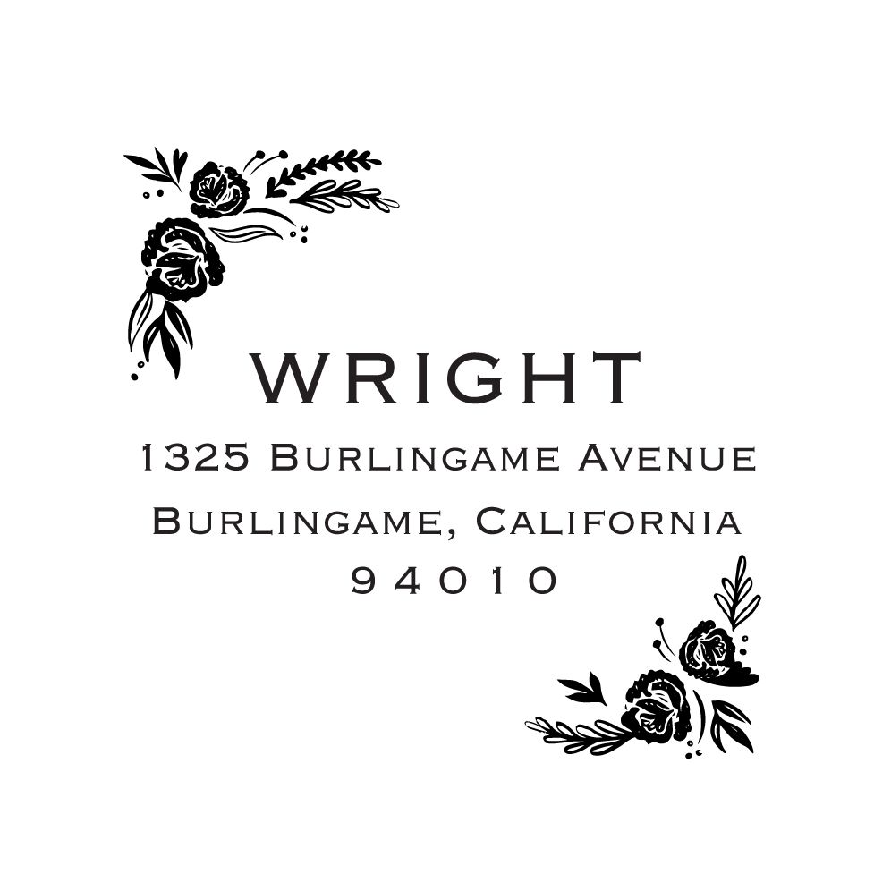 Pretty roses frame your address on this custom stamp, part of the Rose Garden suite of wedding cards designed right here at Paper Source. Our self-inking stamps are an easy way to add your return address to envelopes. Just press down on the stamp machine and it creates a clean, crisp impression of your custom text. From our friends at Three Designing Women.