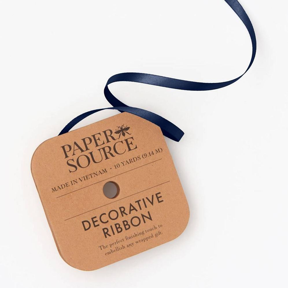 Dark blue satin ribbon perfect to compliment any gift you are giving or any project! Our satin ribbon is luxurious and is double sided! .25″ wide x 10 yards long Paper Source ribbon now comes in recyclable cardboard packaging