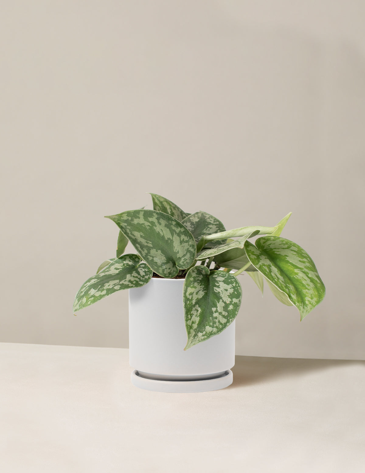The Scindapsus pictus ‘exotica’, commonly referred to as Satin Pothos is a species of Aroid that is prized for its heart-shaped leaves adorned with silvery splotches. This low-maintenance houseplant is perfect as a hanging plant but can be trained vertically since it’s an evergreen climber!