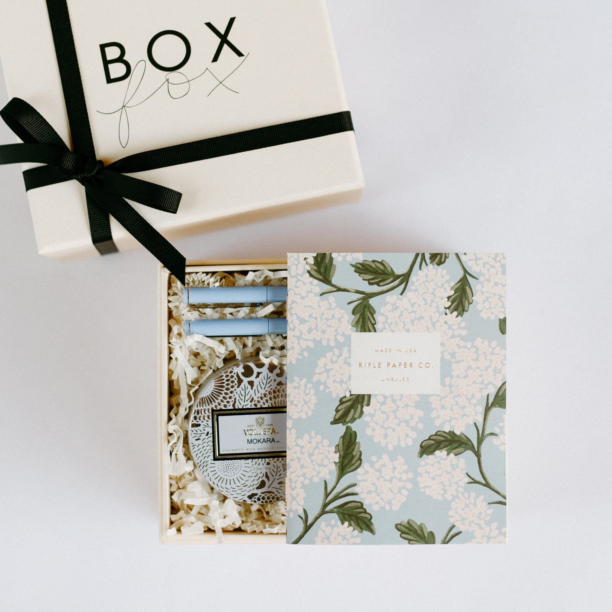 Choice of either matte black or original crème BOXFOX. Each carefully curated and hand-wrapped box ships as a gift, with a handwritten note and no pricing information. Orders take 3-8 business days to deliver, after which you’ll receive an email with tracking information. Whether you want to hand deliver your gifts or ship around the country, you can add separate notes and addresses at checkout.