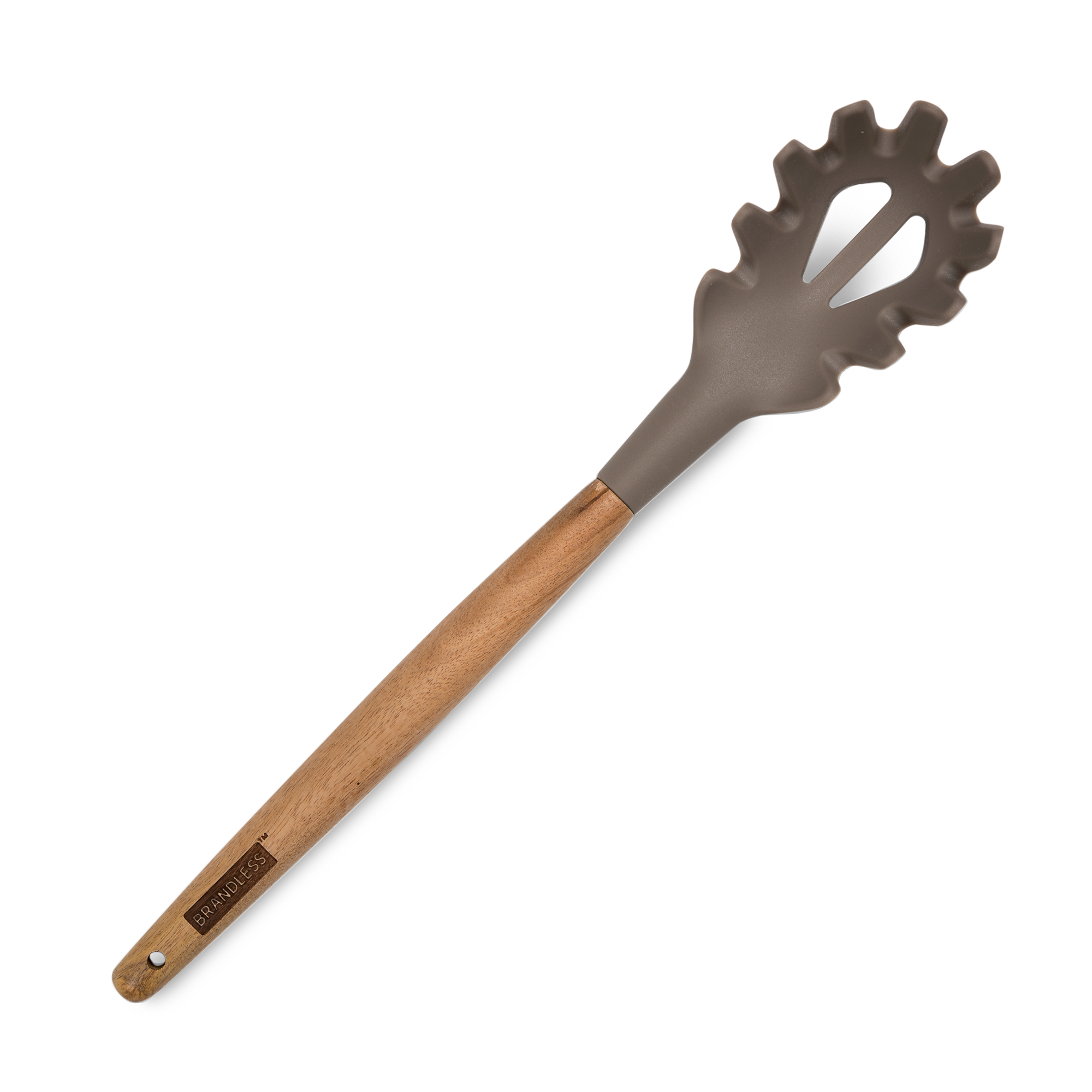 An easy way to stir & serve pasta. Heat-resistant to 240°F, the durable acacia-wood handle stays cool while the silicone fork keeps pots & pans scratch-free.