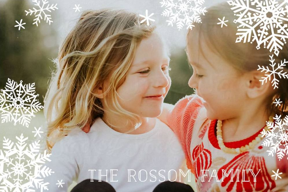 Choose from our variety of snowflake bordered designs to send a season’s greeting to your loved ones. Printed on Mohawk ultra white 120 lb. card stock that is soft to the touch and matches our superfine white envelopes. Paper is FSC certified and made using wind power.