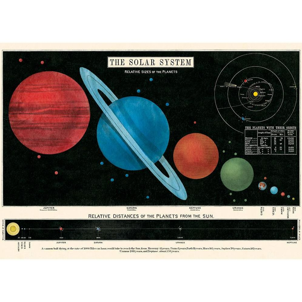 Features very informational images on the solar system and distance they are from the sun. Printed on Cavallini’s signature Italian archival paper. Perfect for wrapping, framing as posters and other creative endeavors. Images from the Cavallini & Co. archives. By Cavallini & Co.