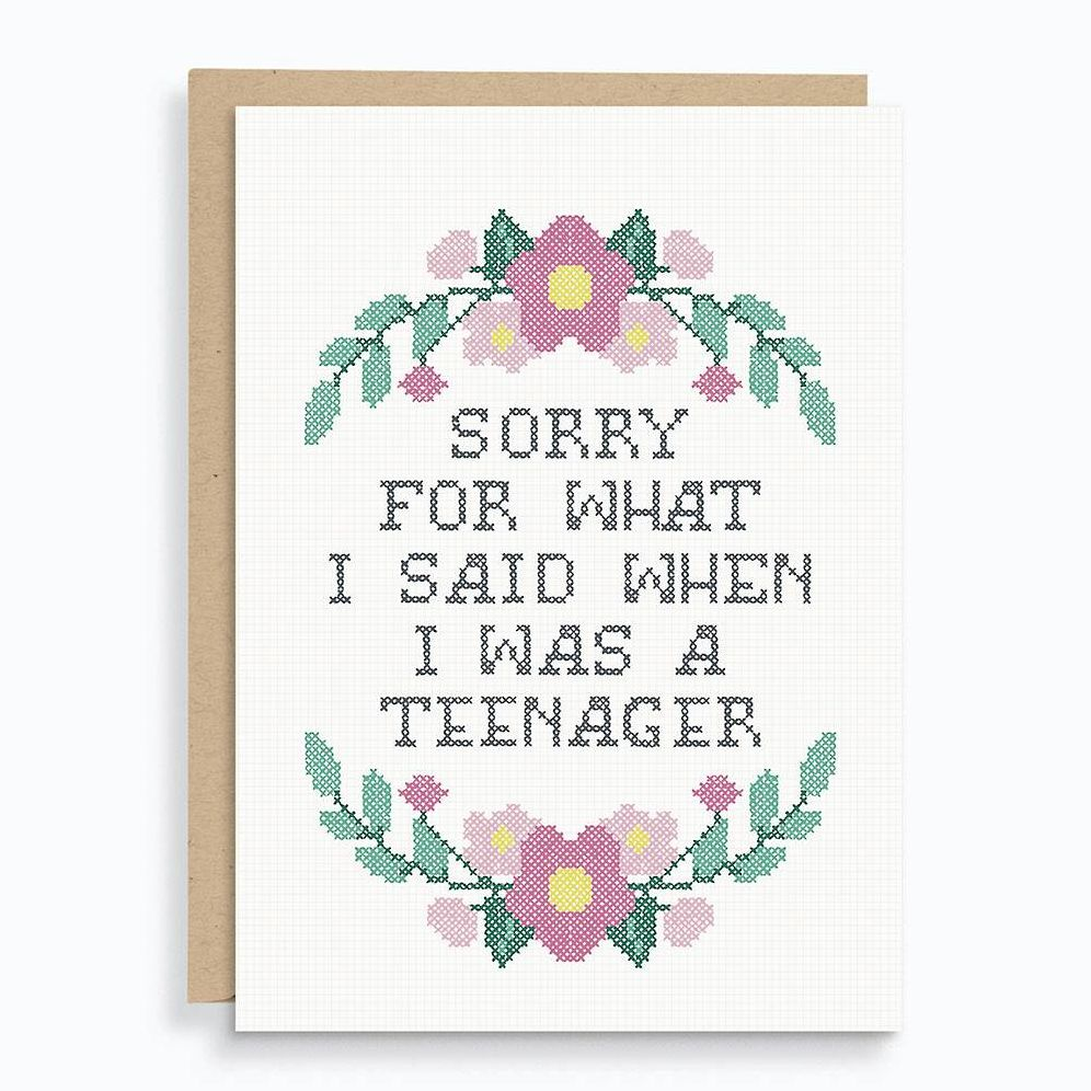 This is the perfect way to show your appreciation for your mom this Mother’s Day, while also apologize for your bratty years (because who was a sweet teenager?). Card reads, “Sorry for what I said as a teenager.”