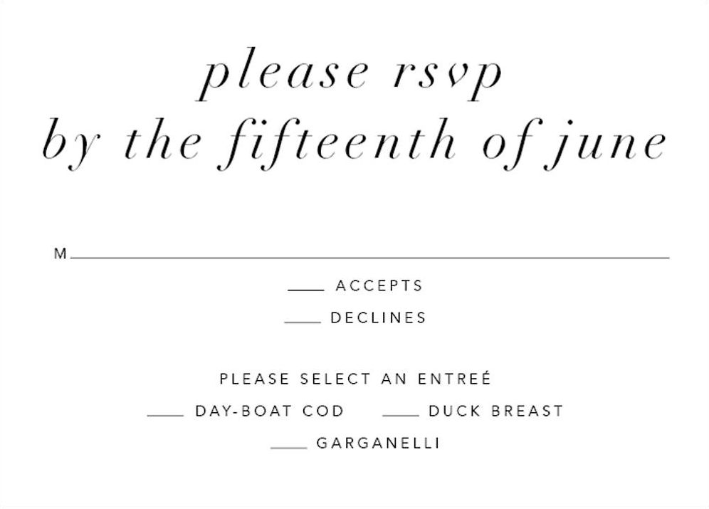 Set the tone of your upcoming wedding festivities with this Oscar de la Renta for Paperless Post response card. It features an intricate design of ornamentation and elegant swirls. Perfect for any wedding theme. Printed on Mohawk superfine white 100 lb. card stock that is soft to the touch and matches our superfine white envelopes. Paper is FSC certified and made using wind power.
