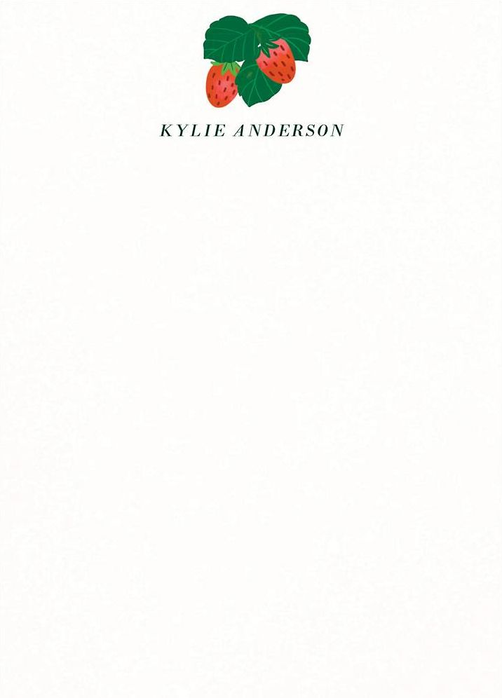 Ripe and ready to go! Sweet strawberries sit atop this stationery design made right here at Paper Source. Printed on superfine white paper, which has a smooth finish and is soft to the touch. 130# cover weight paper with 30% post consumer recycled content.