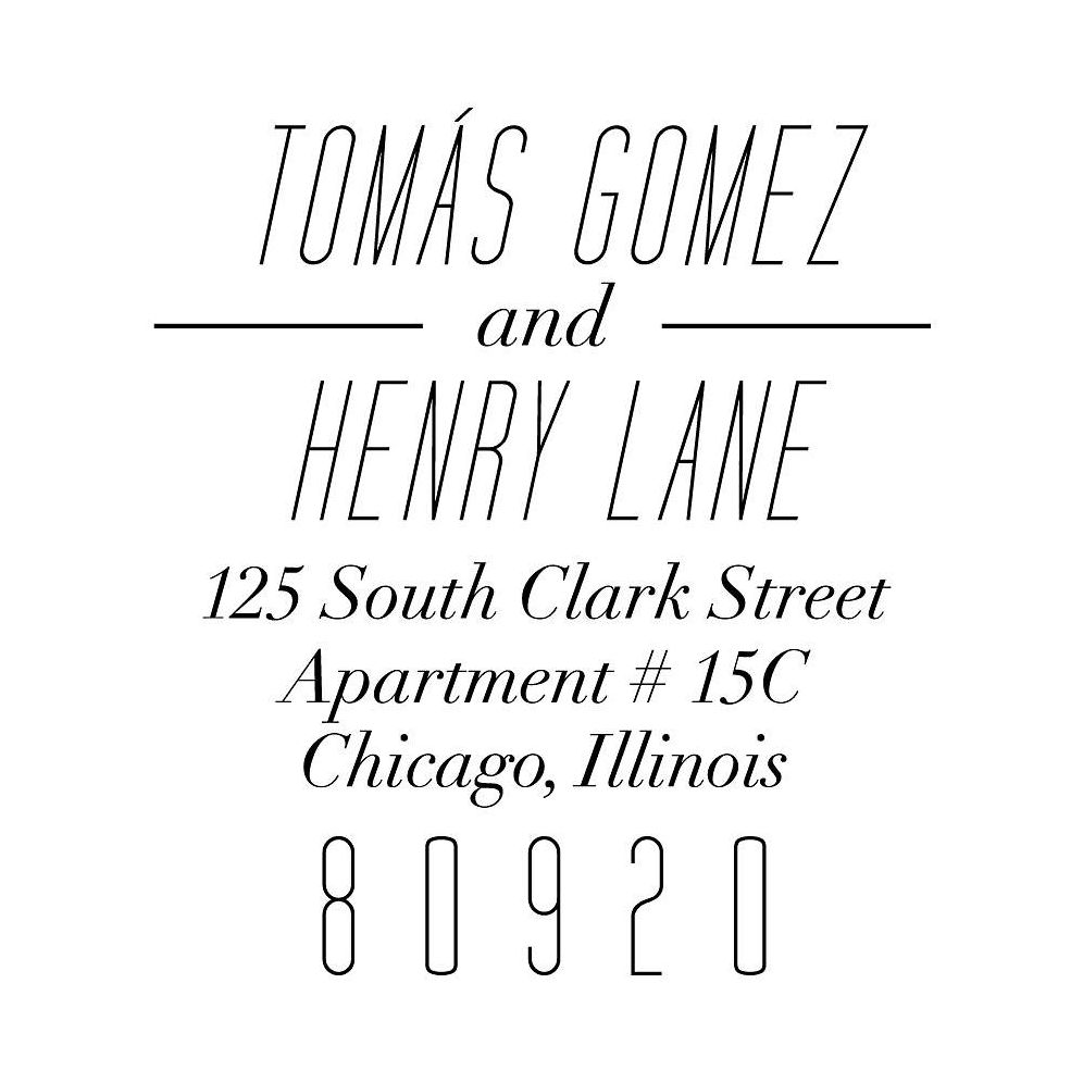 Self-inking stamps with Paper Source custom designs are an easy way to add your return address to envelopes. Just press down on the stamp machine and it creates a clean, crisp impression of your custom text. From Three Designing Women.