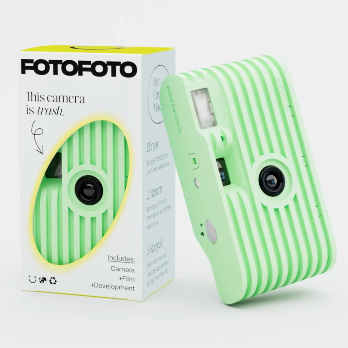 - 100% TRASH — Every FOTOFOTO camera is made from up-cycled waste, and each one gets recycled over and over. And over.