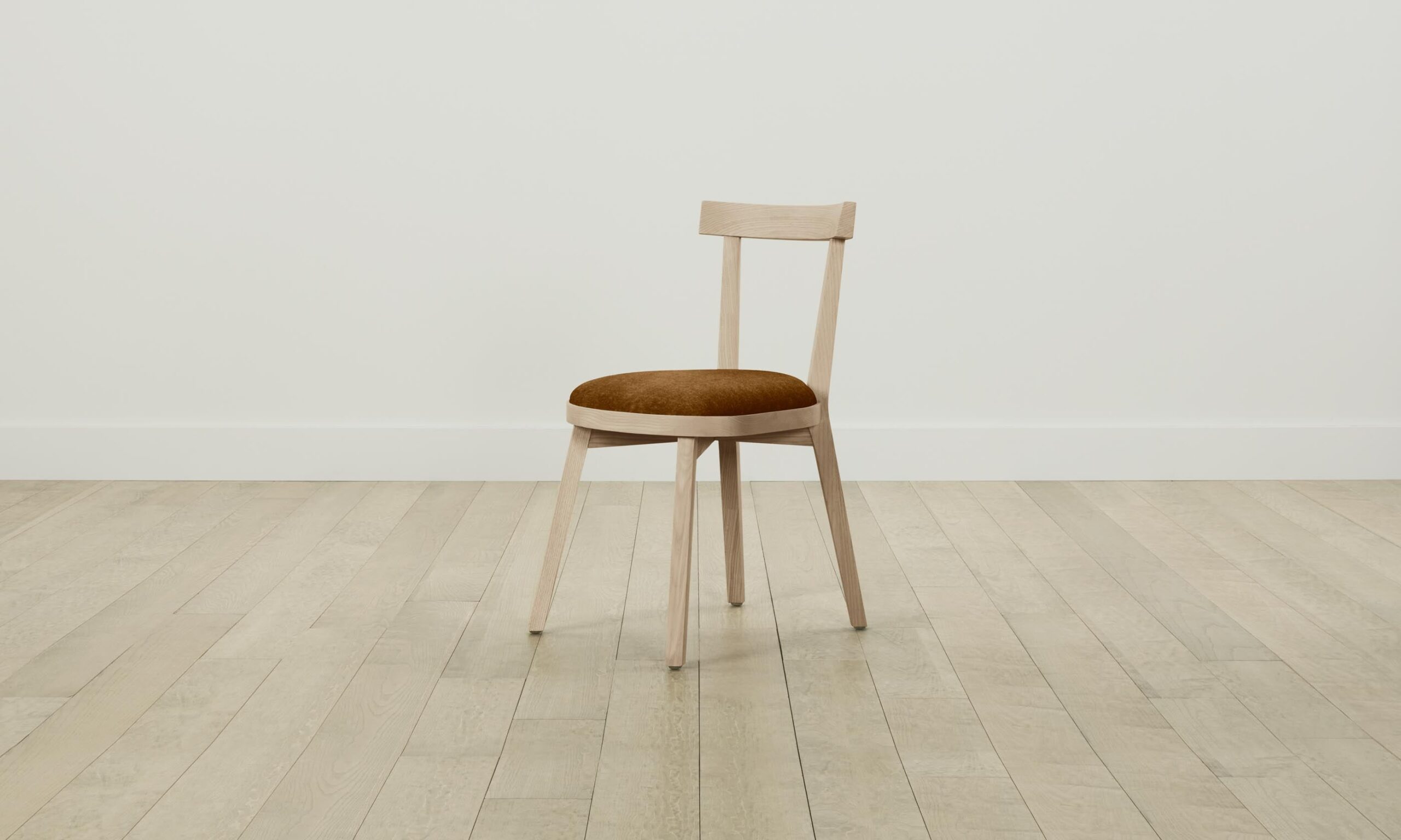 The Allen dining chair’s open back imbues the design with a feeling of lightness. It has a neatly tailored seat and slender legs that taper to the floor.