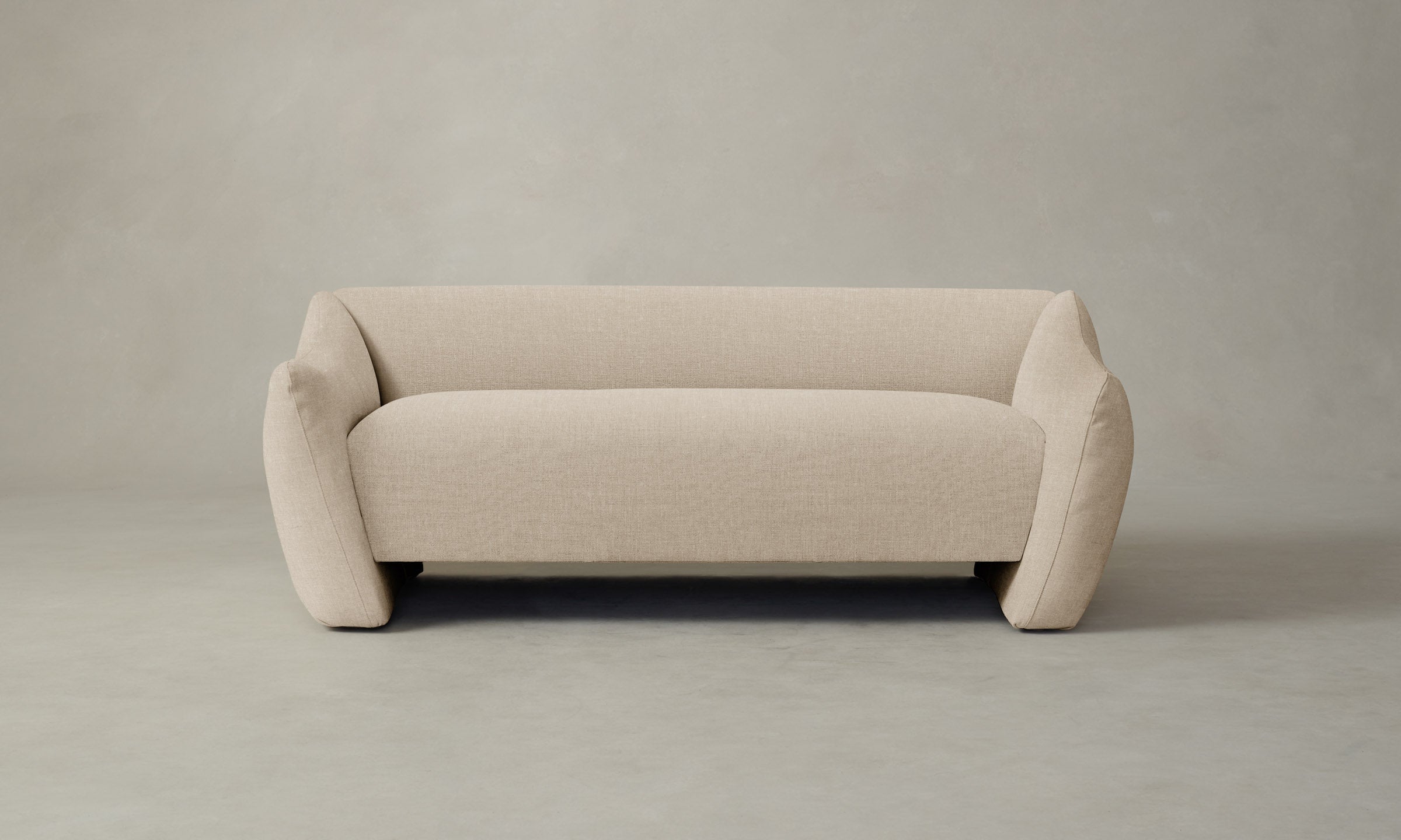 Informed by the curvaceous shapes of postmodernist design, the Bond settee features a flared silhouette with all-around upholstery and cushioning for a comfortable sit.