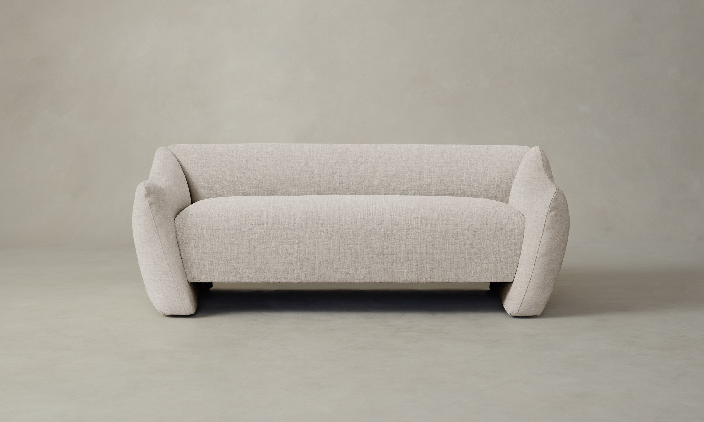 Informed by the curvaceous shapes of postmodernist design, the Bond settee features a flared silhouette with all-around upholstery and cushioning for a comfortable sit.