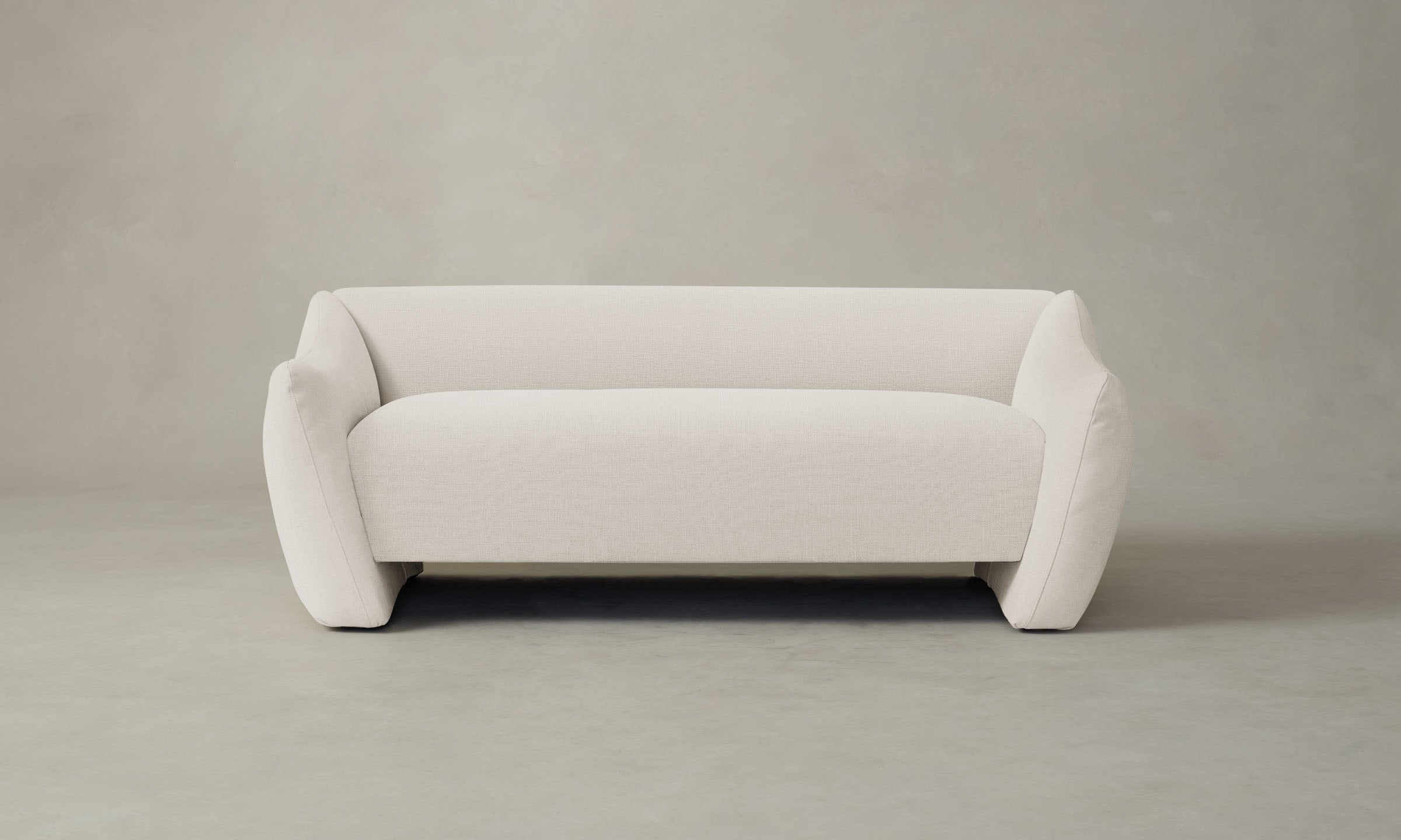 Informed by the curvaceous shapes of postmodernist design, the Bond settee features a flared silhouette with all-around upholstery and cushioning for a comfortable sit.
