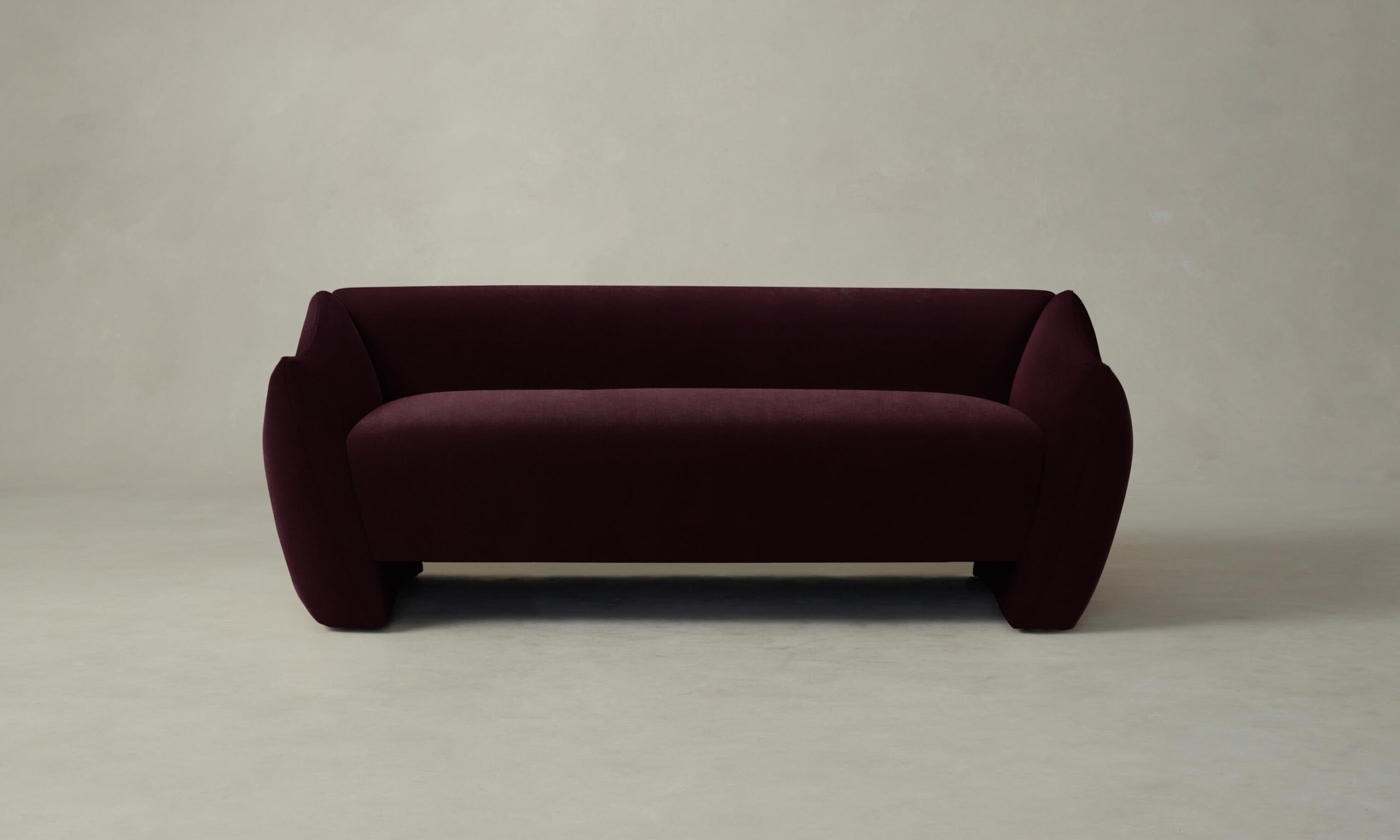 Informed by the curvaceous shapes of postmodernist design, the Bond settee features a flared silhouette with all-around upholstery and cushioning for a comfortable sit.