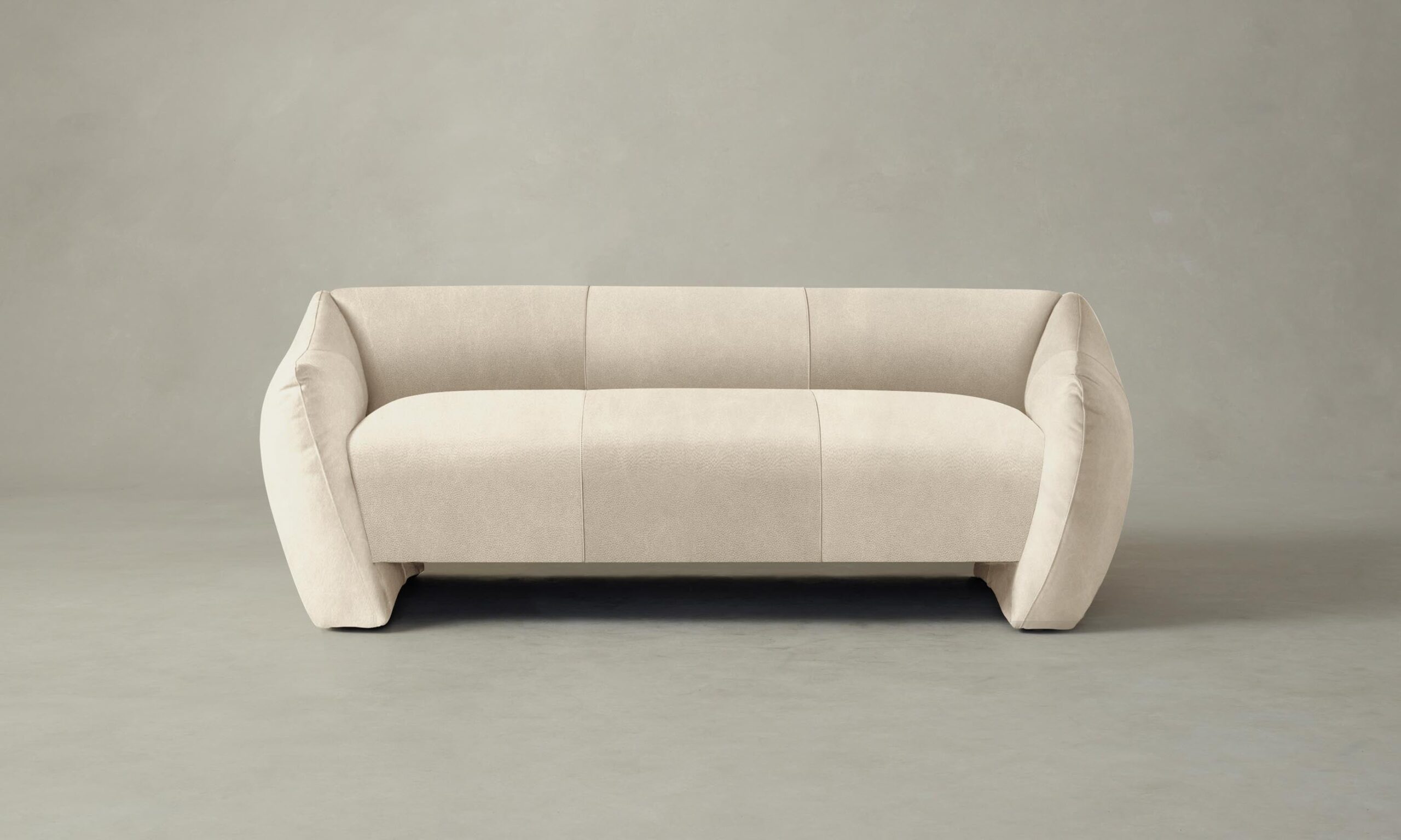 Informed by the curvaceous shapes of postmodernist design, the Bond settee features a flared silhouette with all-around upholstery and cushioning for a comfortable sit.