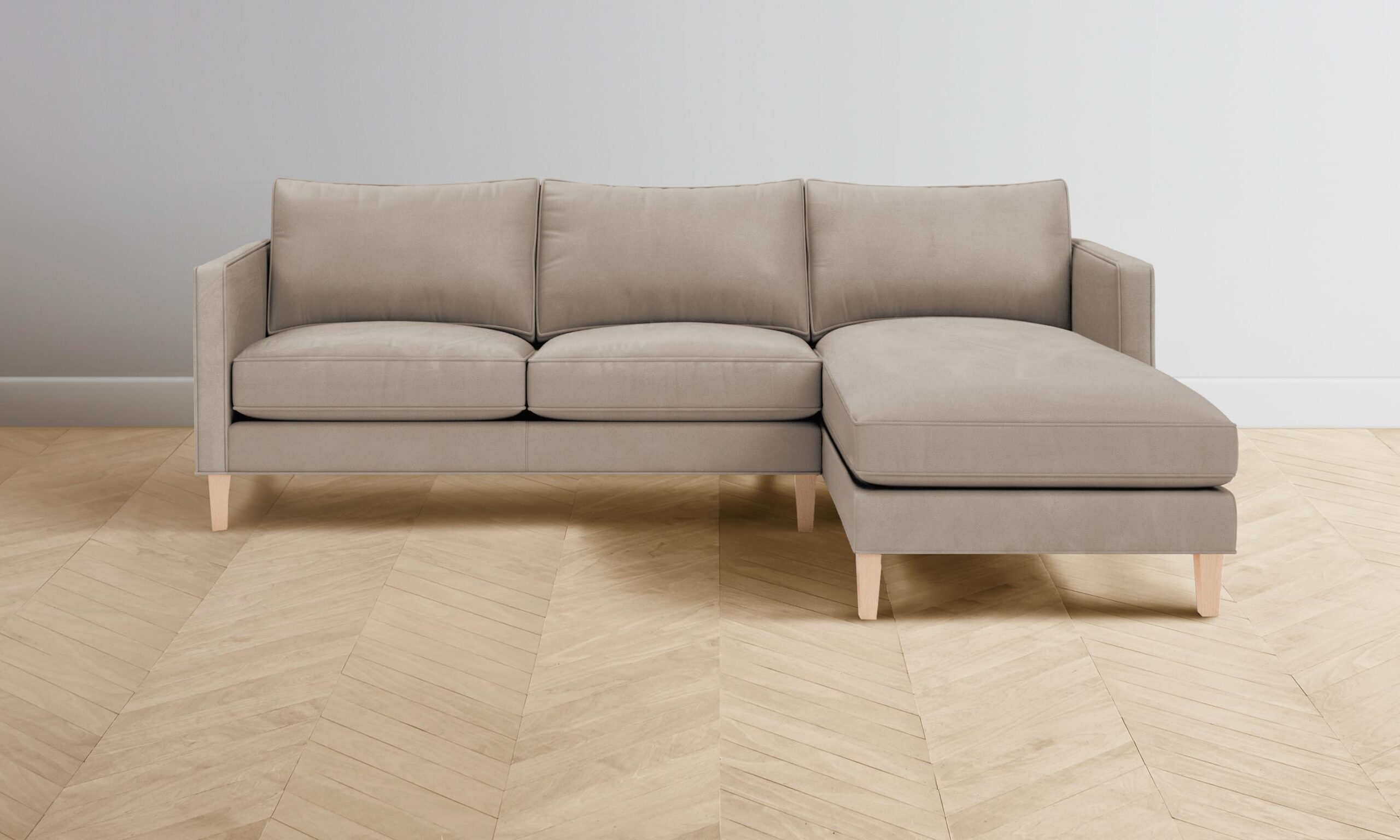 The Crosby sectional is a testament to the charm of simplicity. With a slender profile that suits spaces small and large, the design is neatly upholstered with cord welts and sits atop tapered legs.