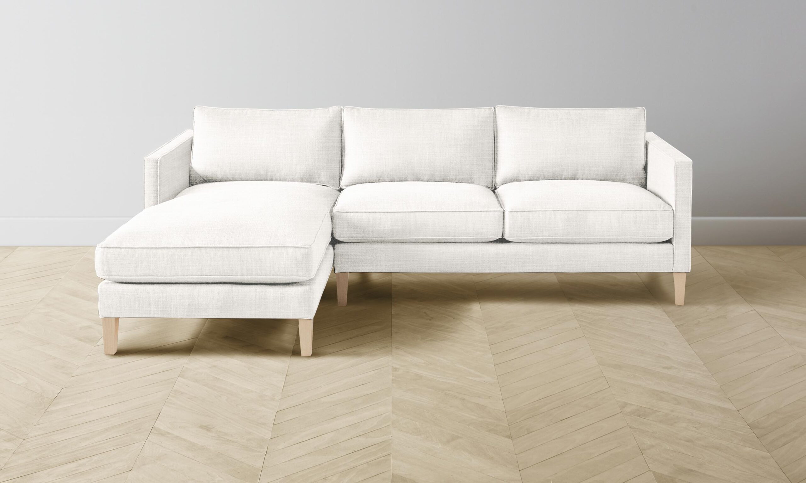 The Crosby sectional is a testament to the charm of simplicity. With a slender profile that suits spaces small and large, the design is neatly upholstered with cord welts and sits atop tapered legs.