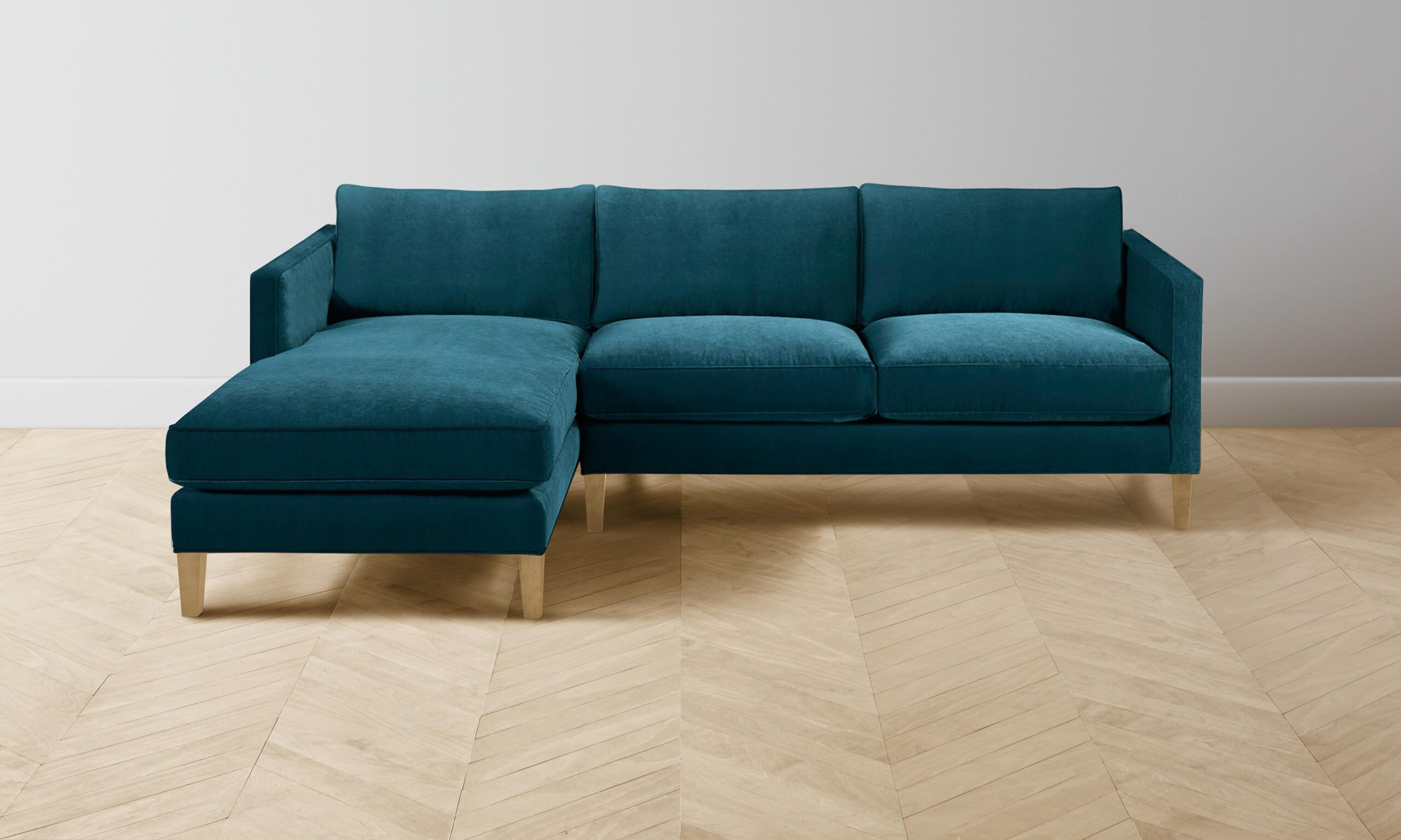 The Crosby sectional is a testament to the charm of simplicity. With a slender profile that suits spaces small and large, the design is neatly upholstered with cord welts and sits atop tapered legs.