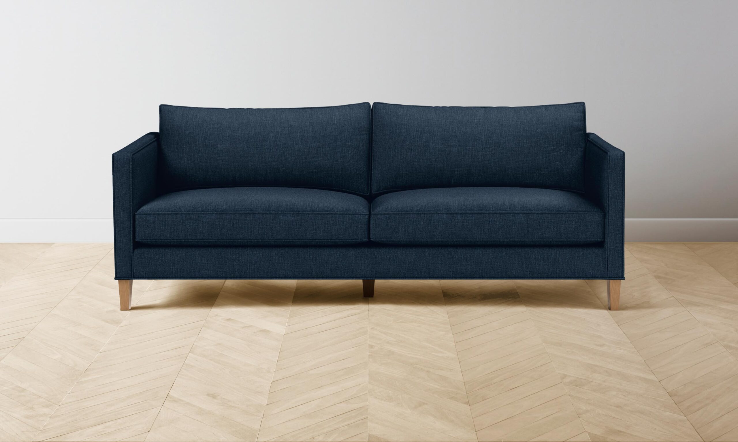 The Crosby sofa is a testament to the charm of simplicity. With a slender profile that suits spaces small and large, the design is neatly upholstered with cord welts and sits atop tapered legs.