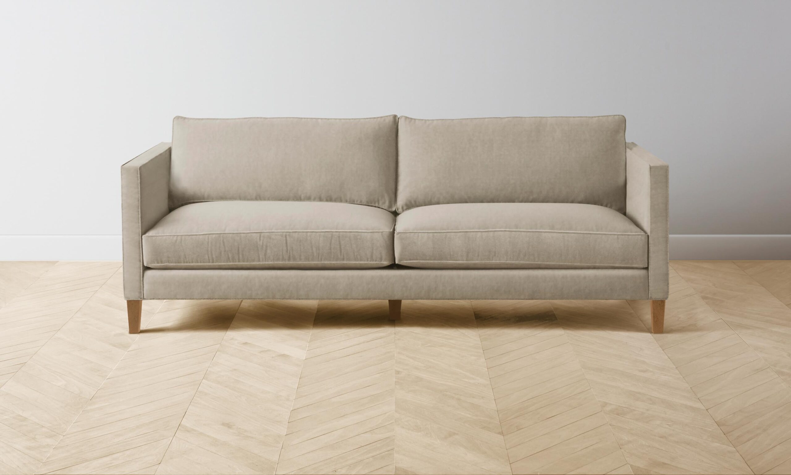 The Crosby sofa is a testament to the charm of simplicity. With a slender profile that suits spaces small and large, the design is neatly upholstered with cord welts and sits atop tapered legs.