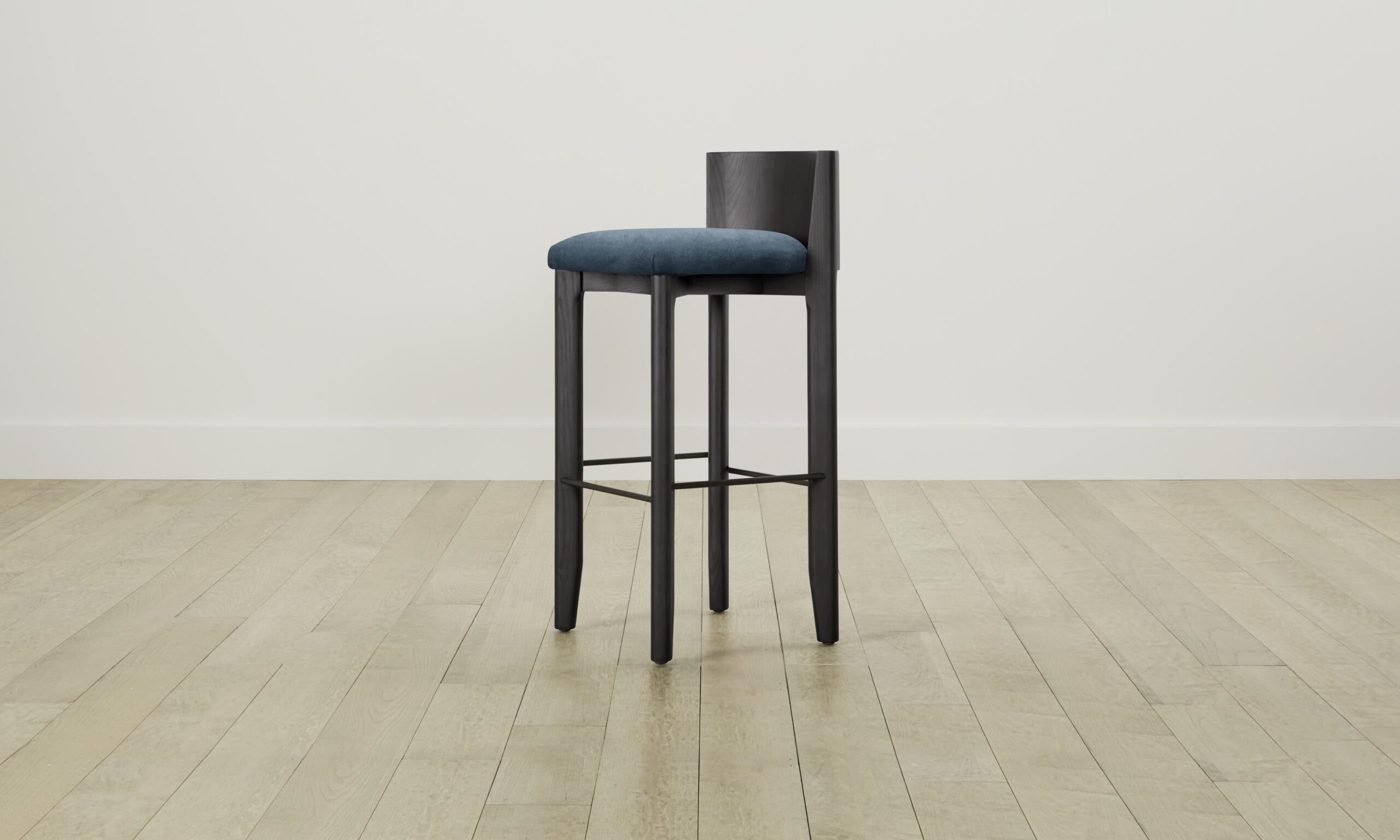 The Delancey bar and counter stool brings depth and dimension into your space with its mixed materiality. Handcrafted from ash with a curved back, it has a plush upholstered seat and metal footrest.