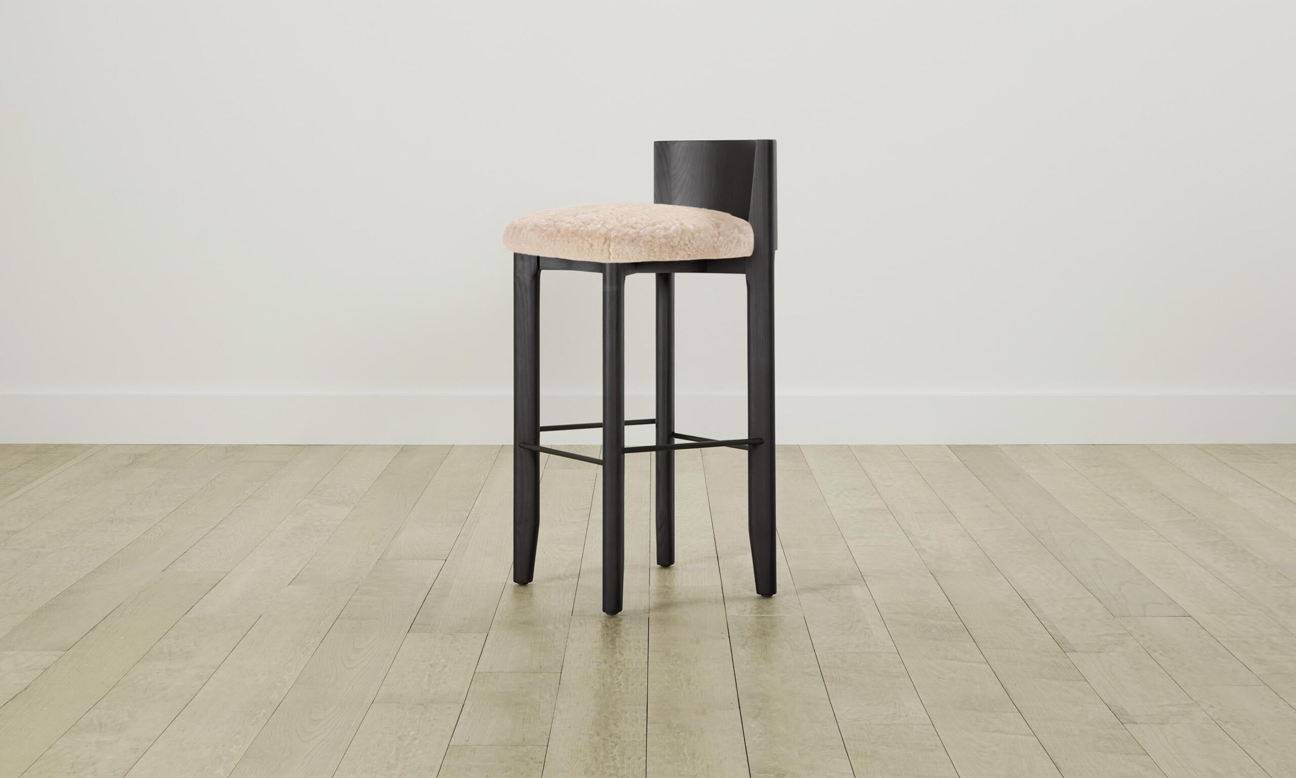 The Delancey bar and counter stool brings depth and dimension into your space with its mixed materiality. Handcrafted from ash with a curved back, it has a plush upholstered seat and metal footrest.