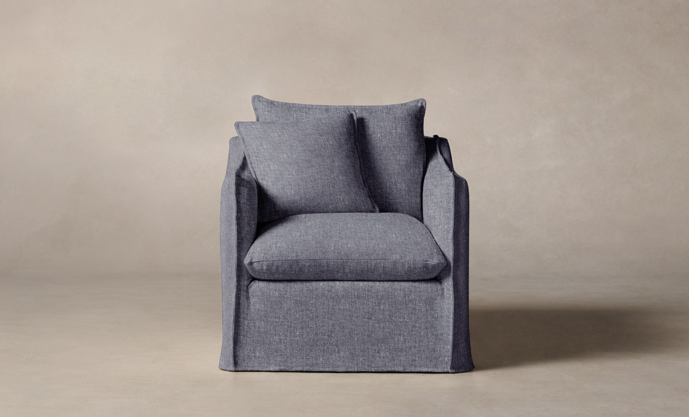 The Dune chair is a vision of effortlessness and ease. It boasts a deep seat, plush cushioning, and relaxed slipcover with hand-sewn flange seams for an elegant finish.