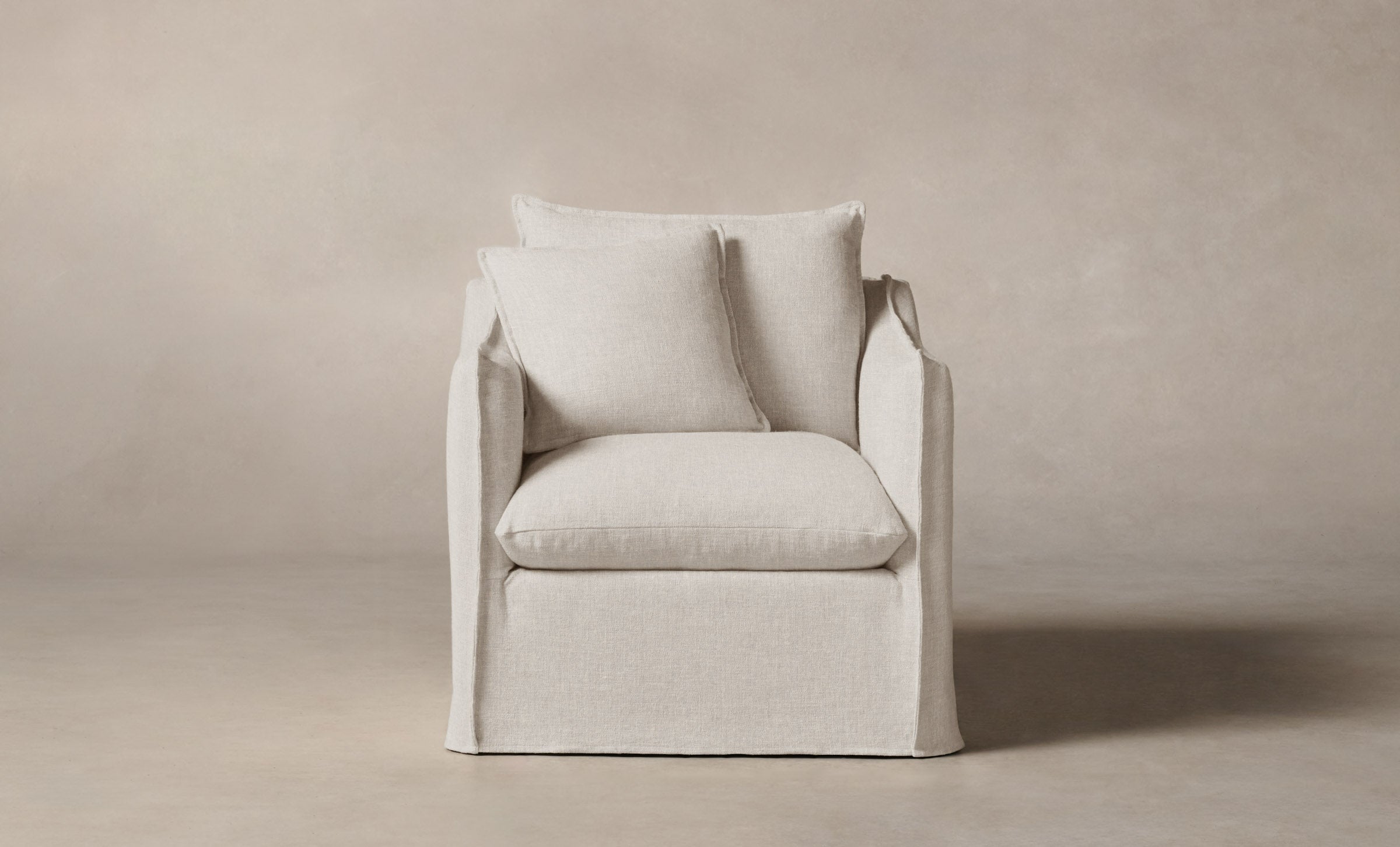 The Dune chair is a vision of effortlessness and ease. It boasts a deep seat, plush cushioning, and relaxed slipcover with hand-sewn flange seams for an elegant finish.