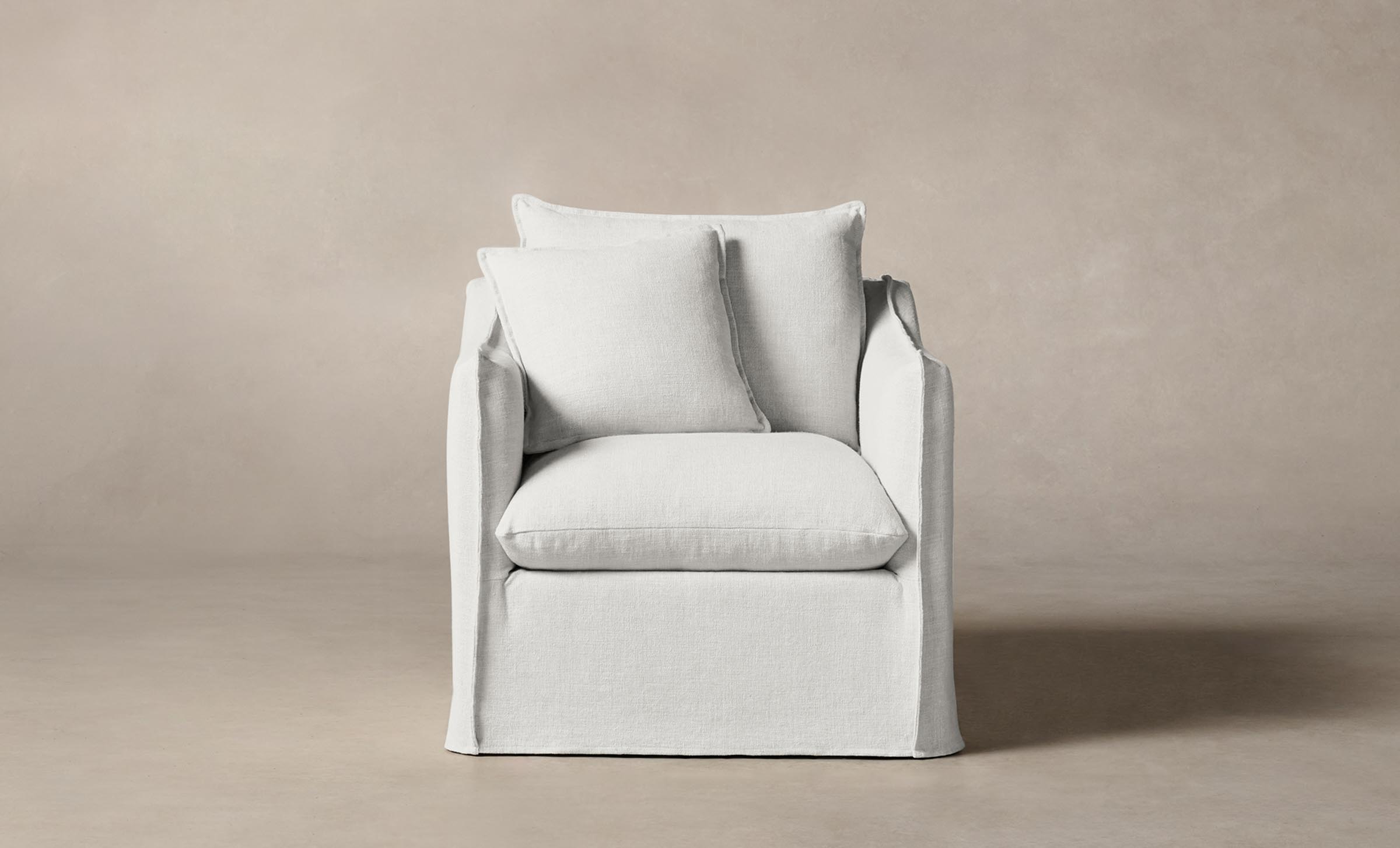 The Dune chair is a vision of effortlessness and ease. It boasts a deep seat, plush cushioning, and relaxed slipcover with hand-sewn flange seams for an elegant finish.