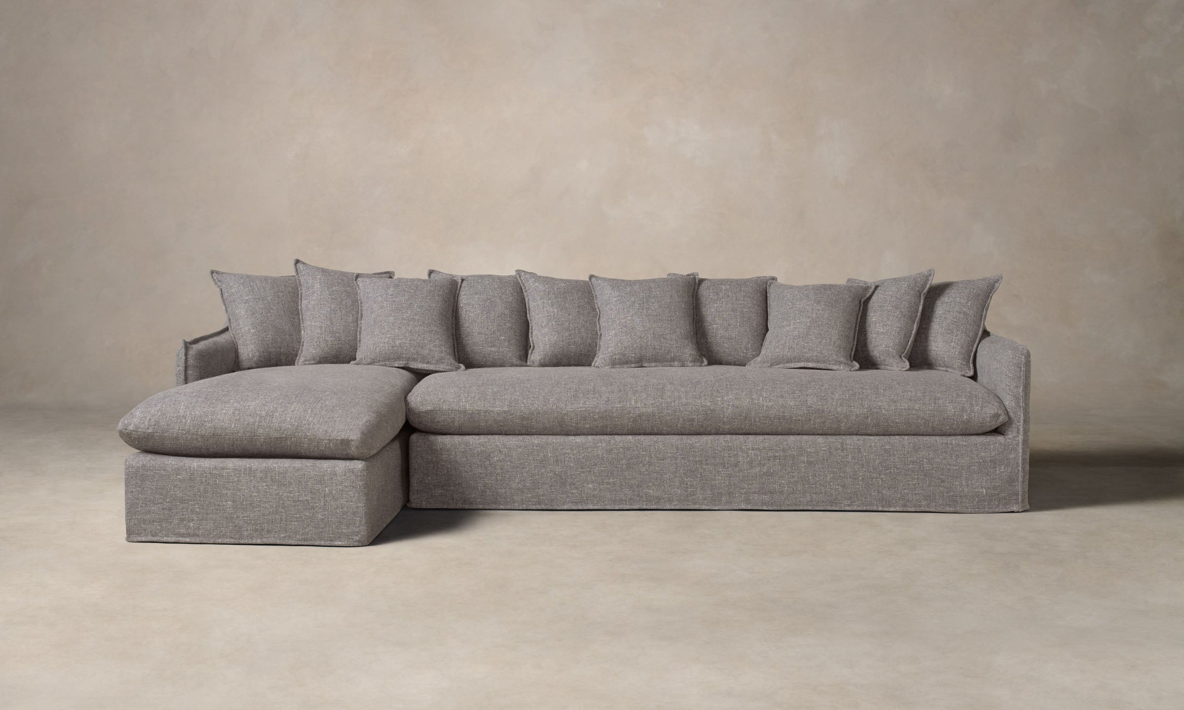 The Dune sectional is a vision of effortlessness and ease. It boasts a deep seat, plush cushioning, and relaxed slipcover with hand-sewn flange seams for an elegant finish.