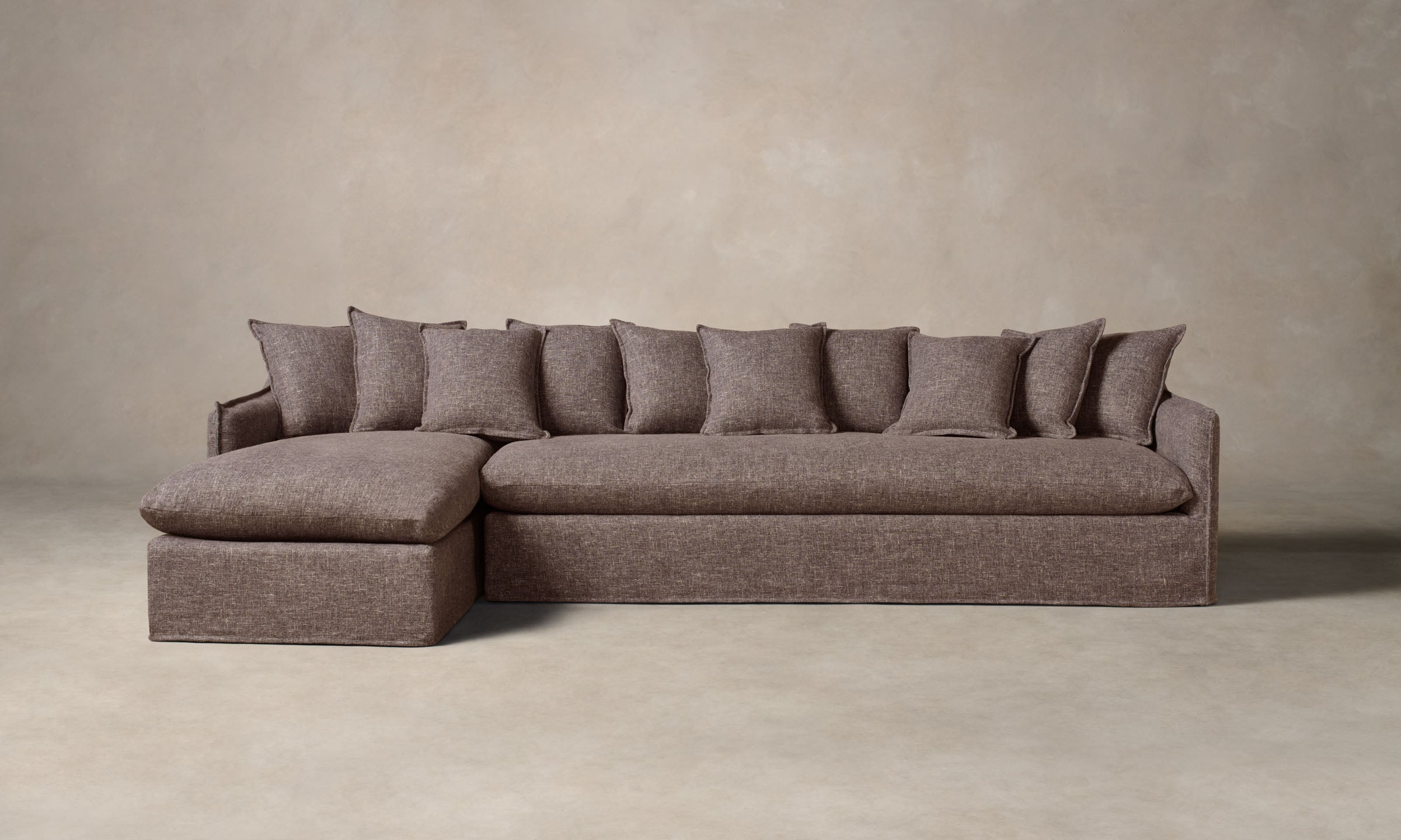 The Dune sectional is a vision of effortlessness and ease. It boasts a deep seat, plush cushioning, and relaxed slipcover with hand-sewn flange seams for an elegant finish.