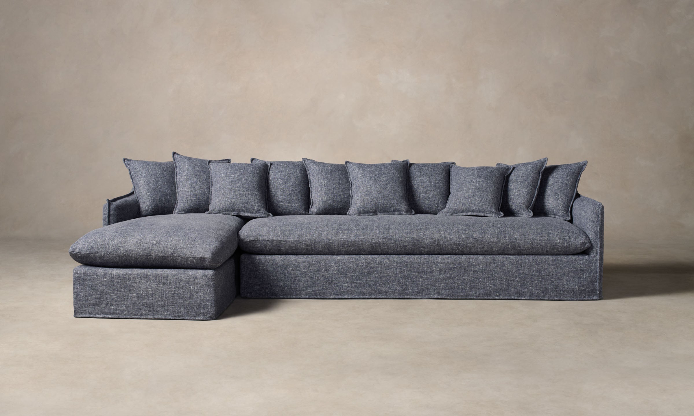 The Dune sectional is a vision of effortlessness and ease. It boasts a deep seat, plush cushioning, and relaxed slipcover with hand-sewn flange seams for an elegant finish.