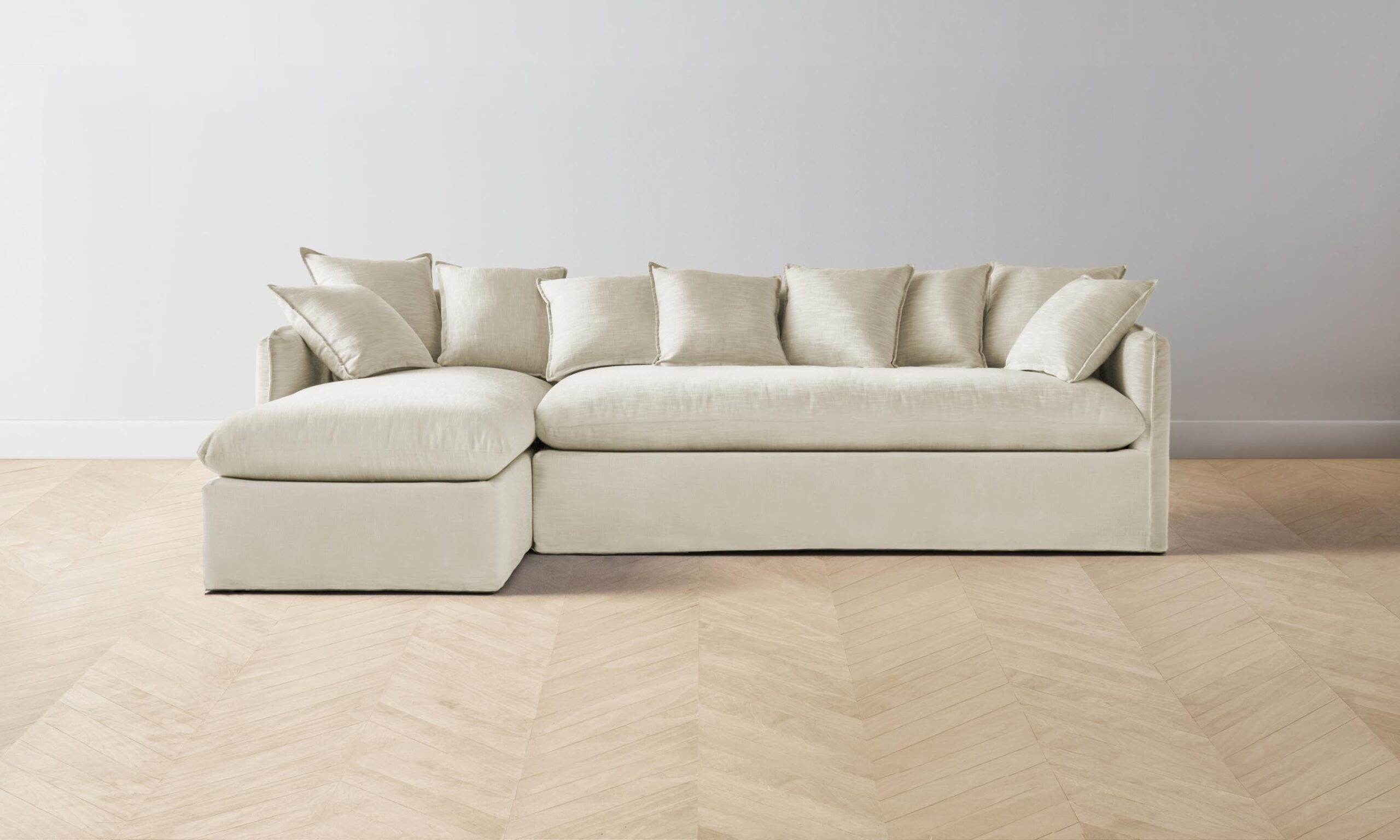 The Dune sectional is a vision of effortlessness and ease. It boasts a deep seat, plush cushioning, and relaxed slipcover with hand-sewn flange seams for an elegant finish.