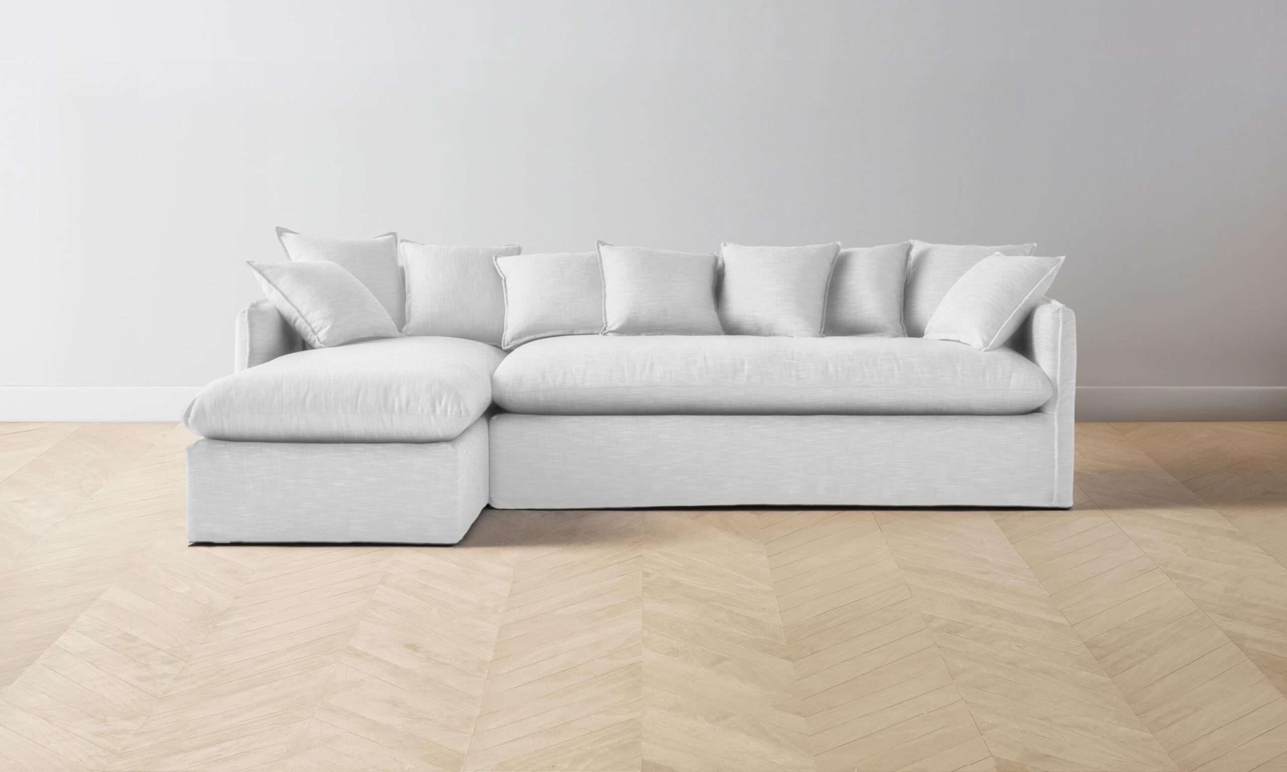 The Dune sectional is a vision of effortlessness and ease. It boasts a deep seat, plush cushioning, and relaxed slipcover with hand-sewn flange seams for an elegant finish.