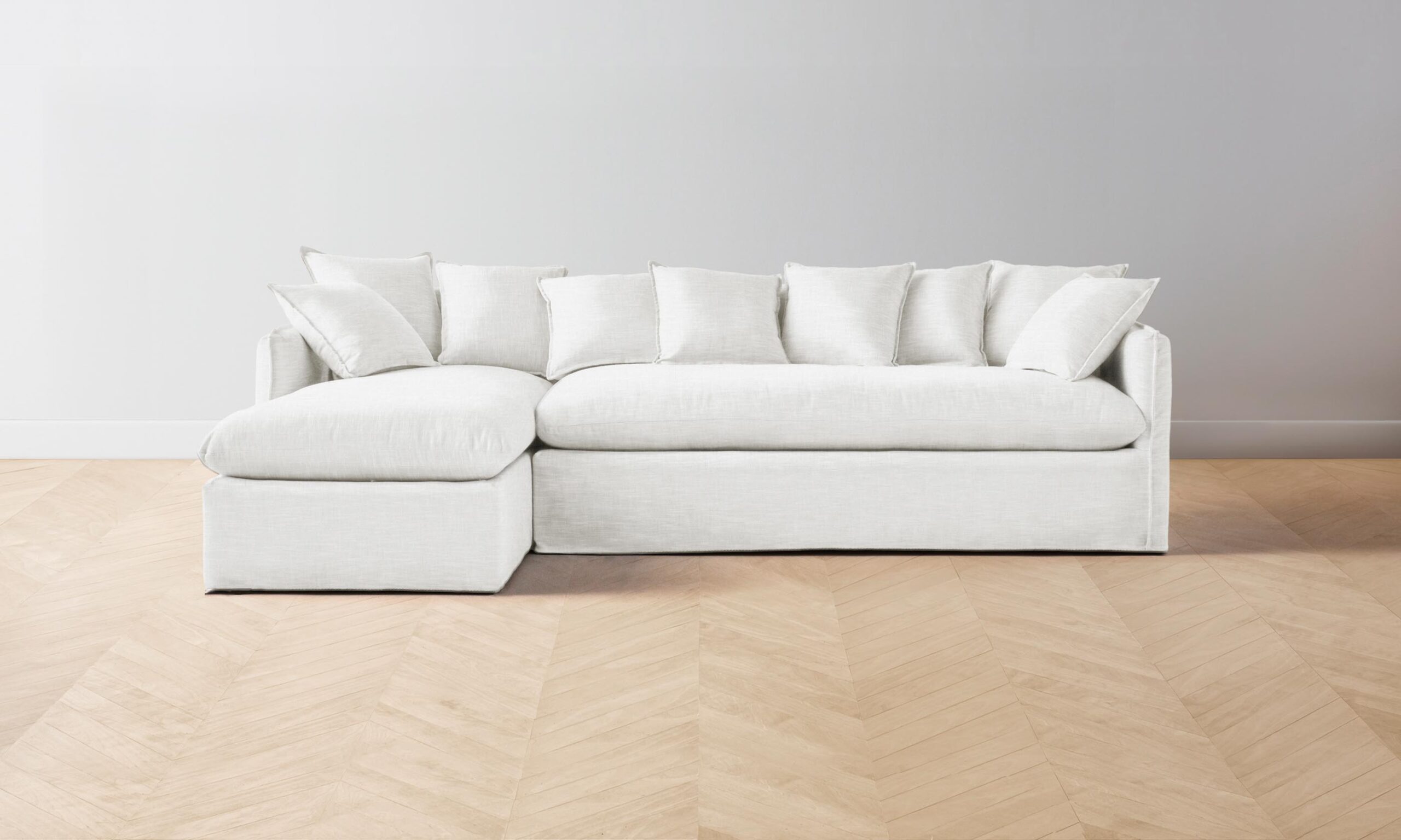 The Dune sectional is a vision of effortlessness and ease. It boasts a deep seat, plush cushioning, and relaxed slipcover with hand-sewn flange seams for an elegant finish.