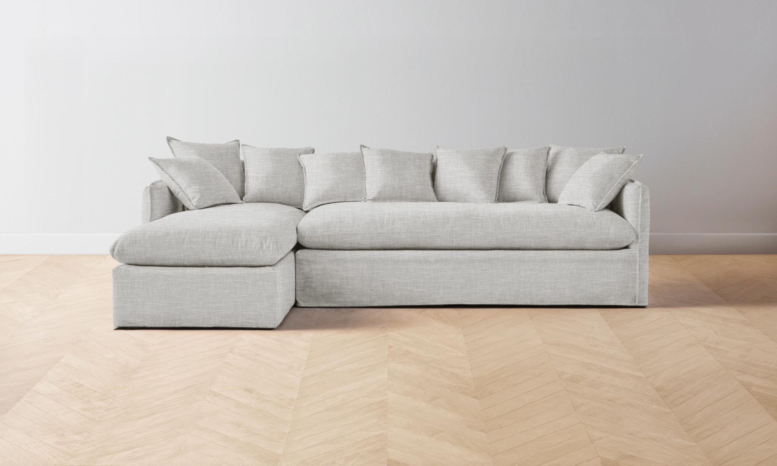 The Dune sectional is a vision of effortlessness and ease. It boasts a deep seat, plush cushioning, and relaxed slipcover with hand-sewn flange seams for an elegant finish.