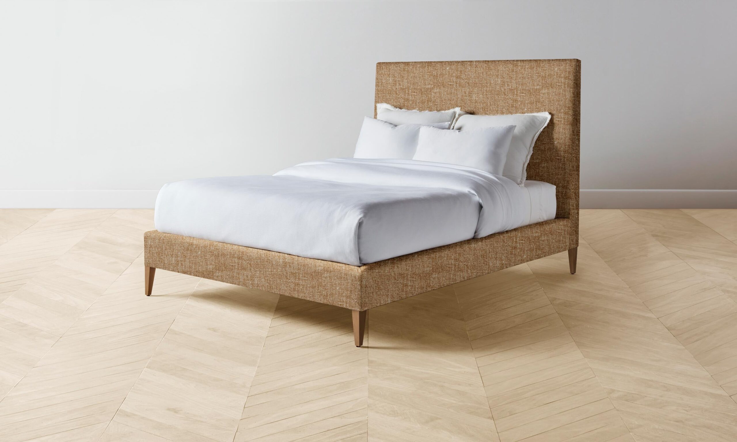 With its clean lines and neat tailoring, the Essex bed is timeless in the truest sense. It has a fully upholstered frame with mitered corners and rests upon elegantly tapered legs.