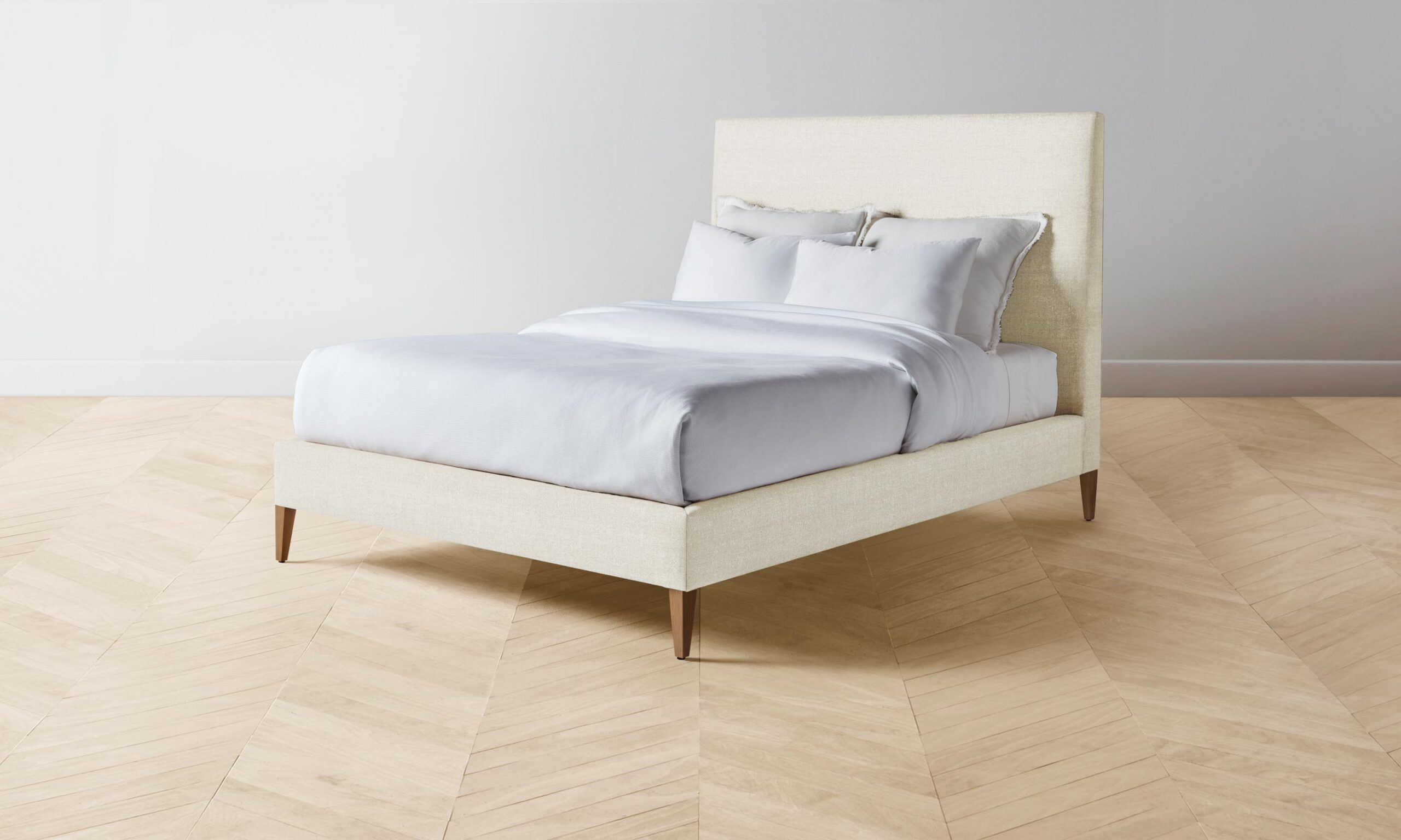 With its clean lines and neat tailoring, the Essex bed is timeless in the truest sense. It has a fully upholstered frame with mitered corners and rests upon elegantly tapered legs.