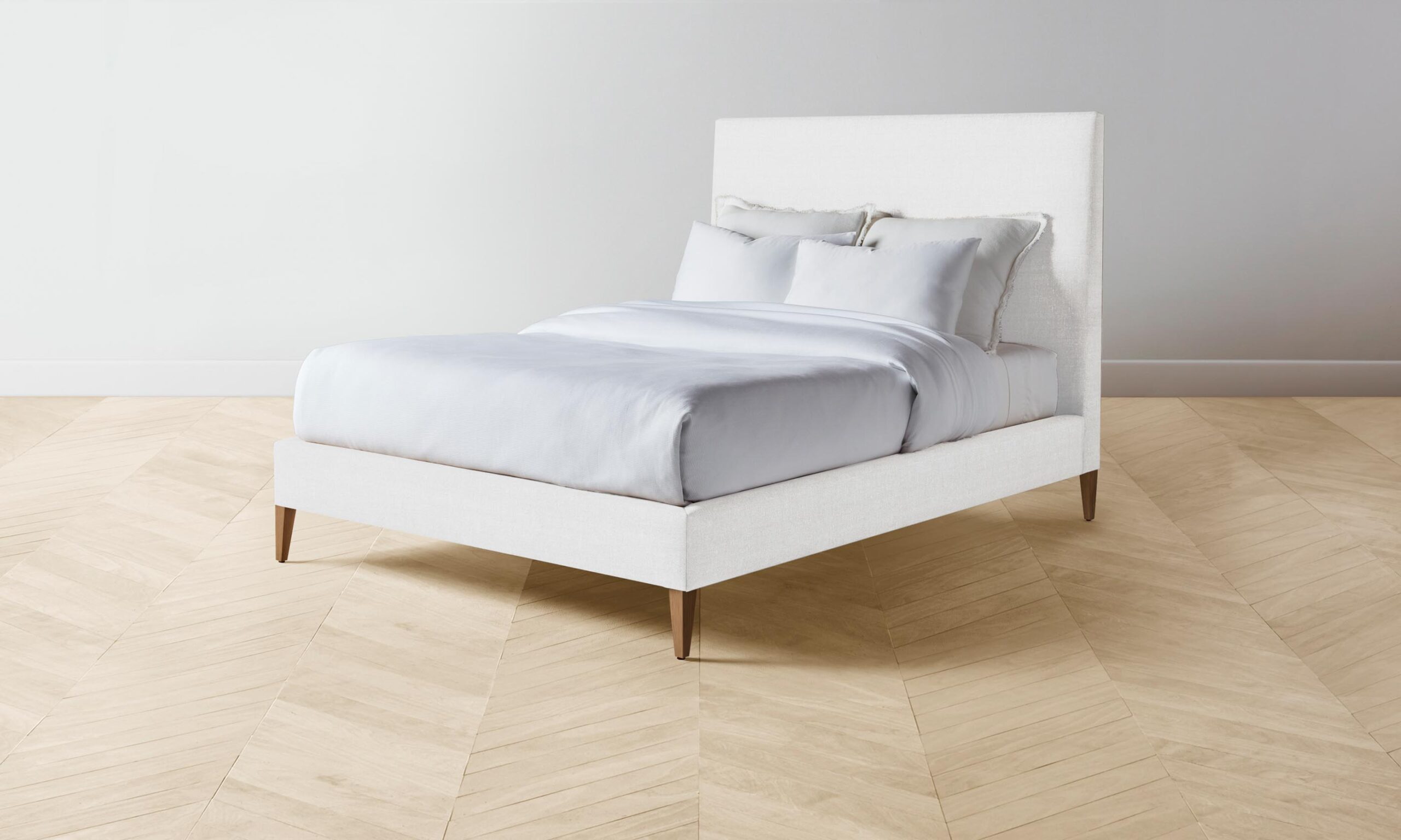 With its clean lines and neat tailoring, the Essex bed is timeless in the truest sense. It has a fully upholstered frame with mitered corners and rests upon elegantly tapered legs.